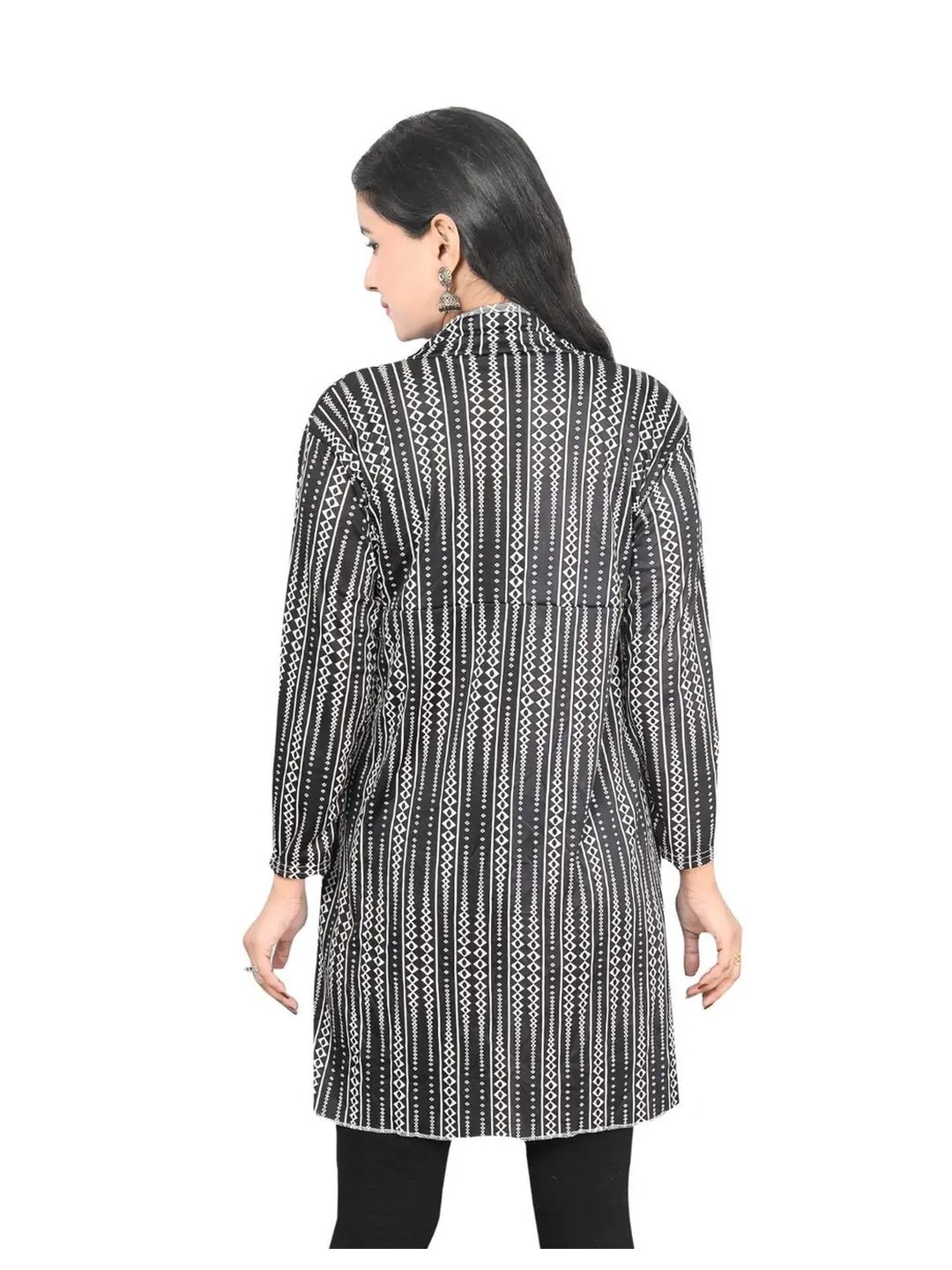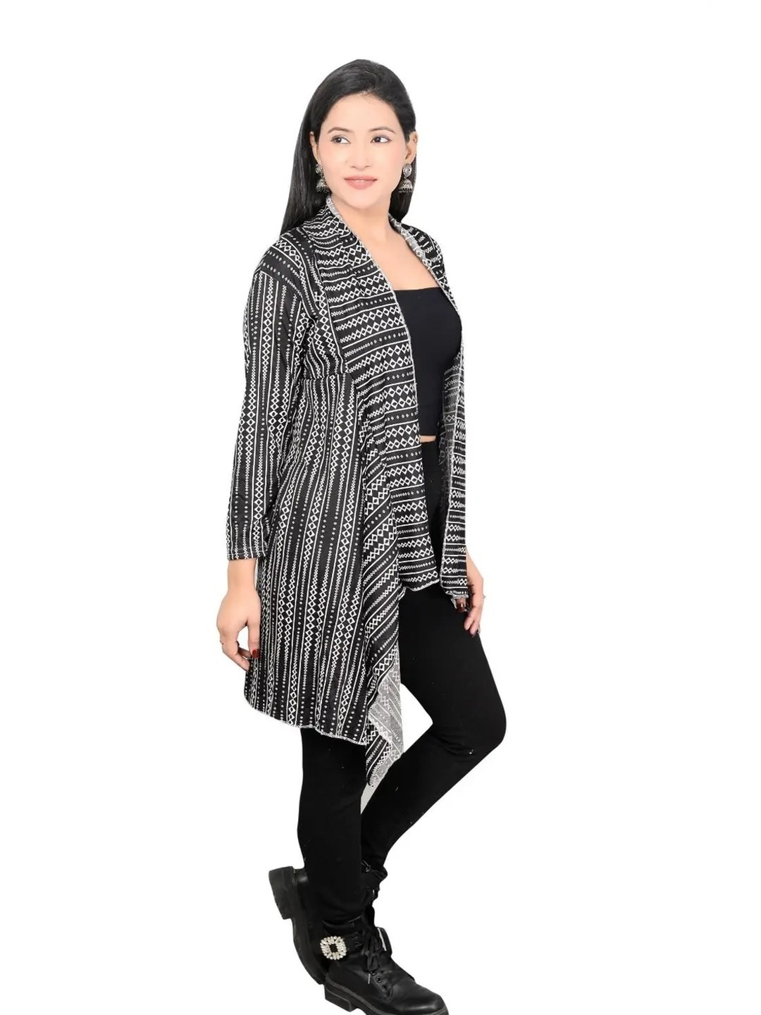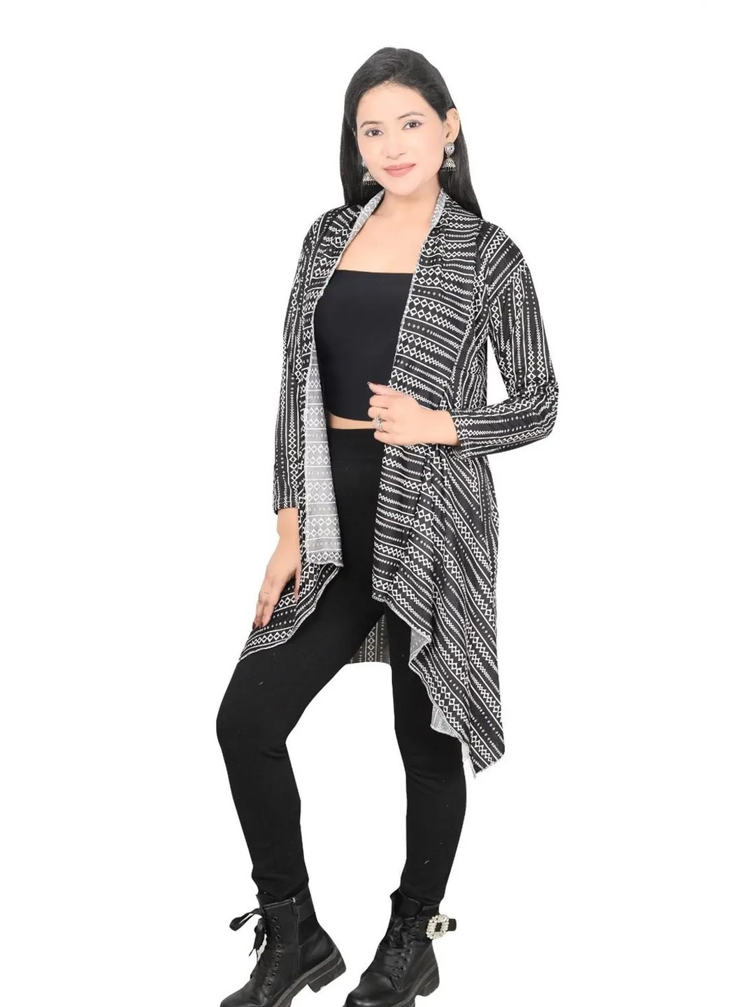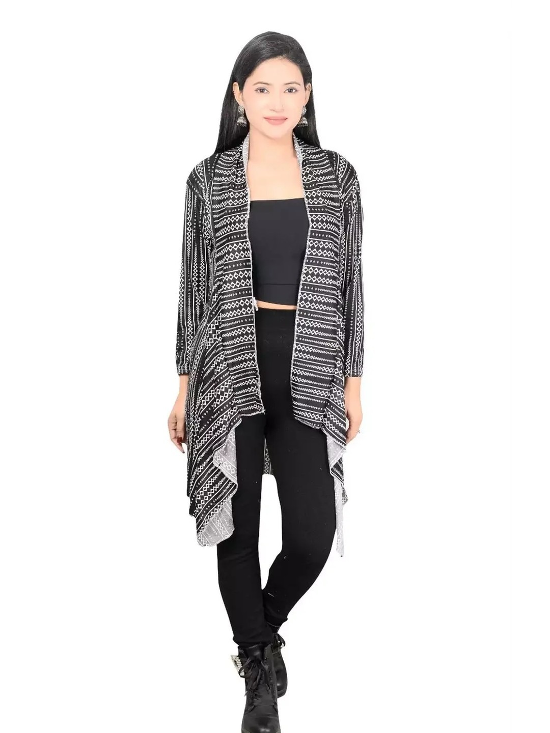 Product Name: Abstract Print High-Low Black Shrug for Women