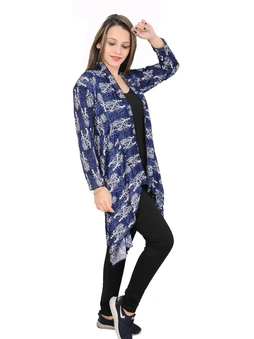 Product Name: Abstract Print High-Low Blue Shrug for Women