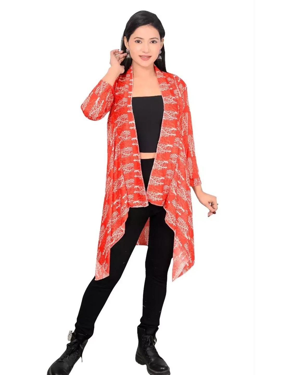 Product Name: Abstract Print High-Low Pink Shrug for Women