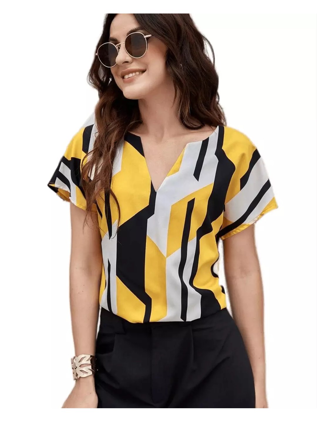 Product Name: Abstract Printed V-Neck Boxy Top for Women
