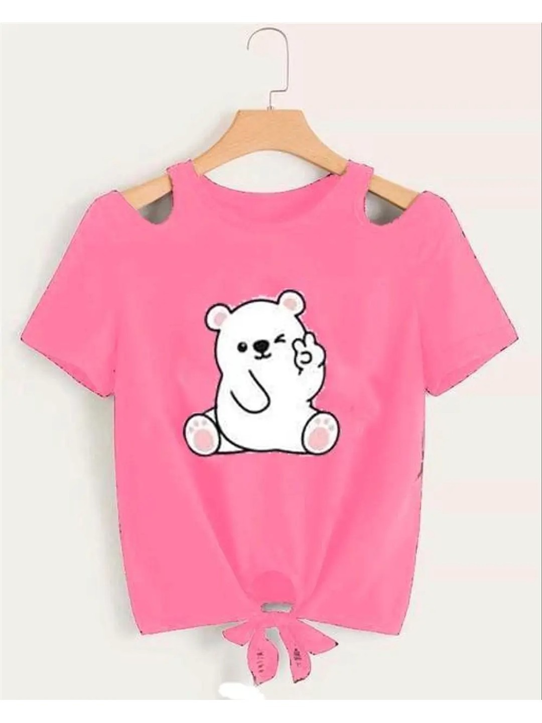 Product Name: Bear Printed Cold Shoulder Tie-Front Top for Women