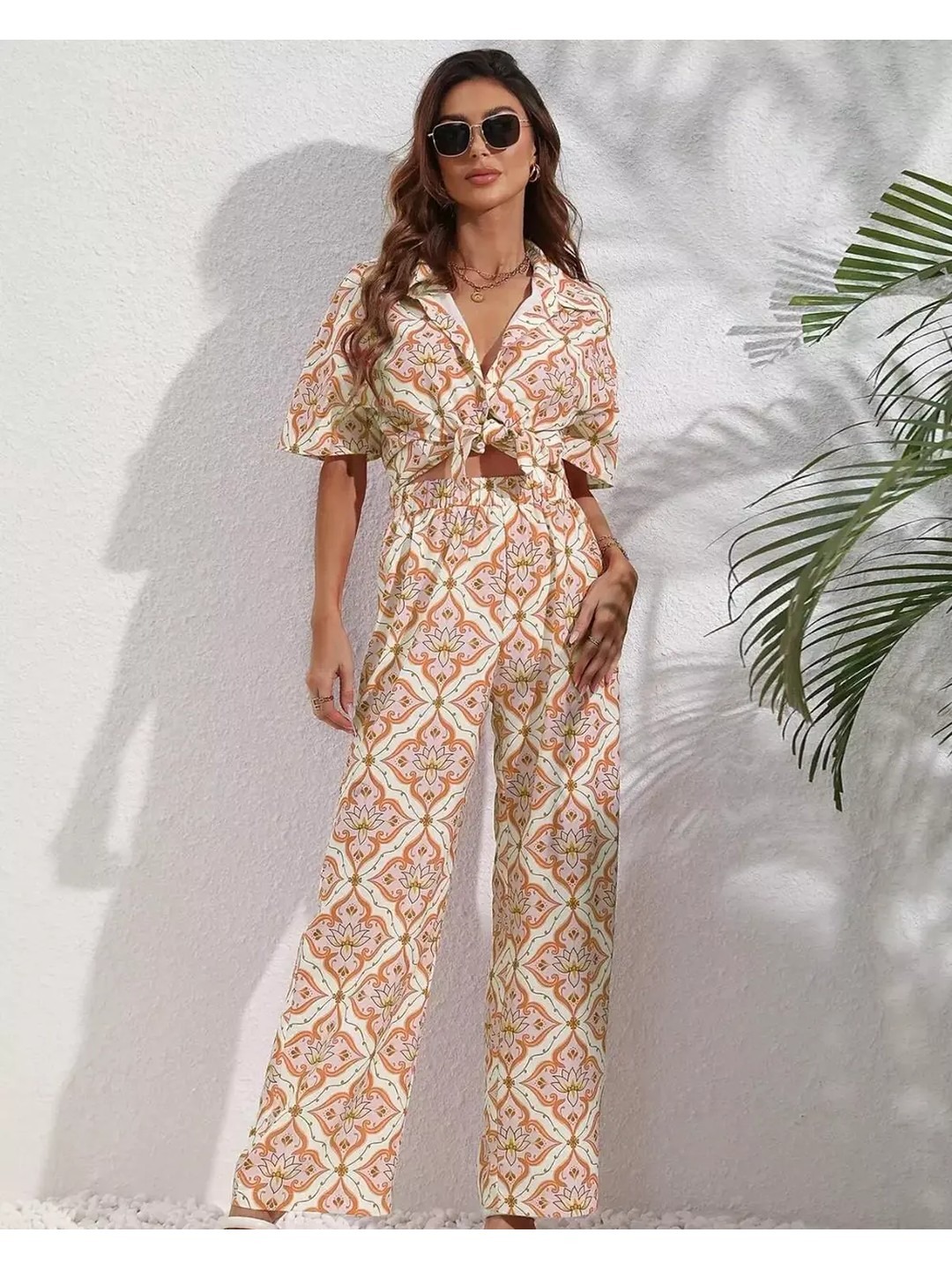 Product Name: Beige Ethnic Printed Shirt Co-ord Set for Women