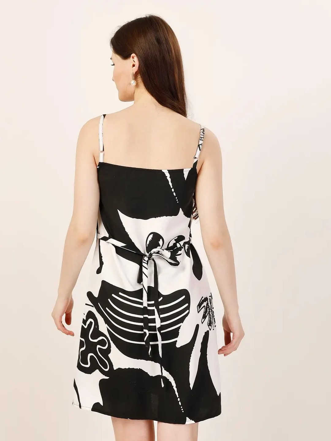 Product Name: Black Abstract Printed Mini Slip Dress for Women