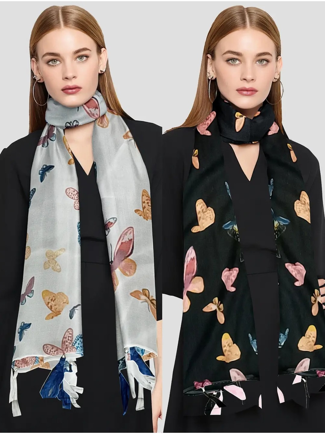 Product Name: Black Butterfly Printed Scarf Combo for Women