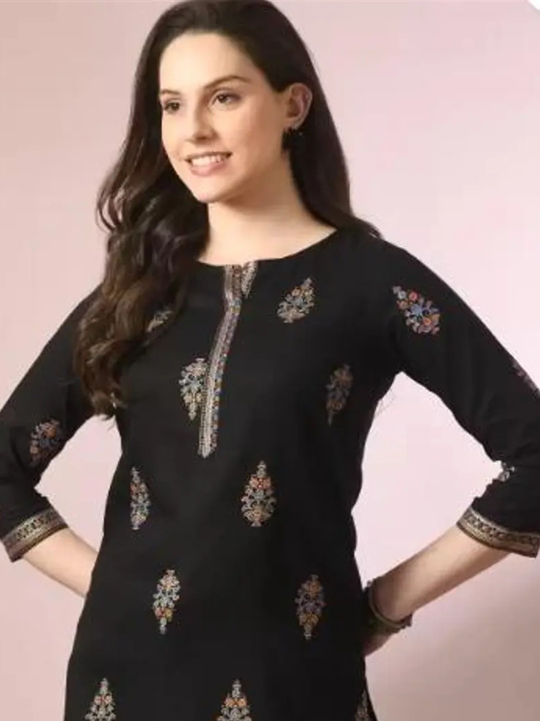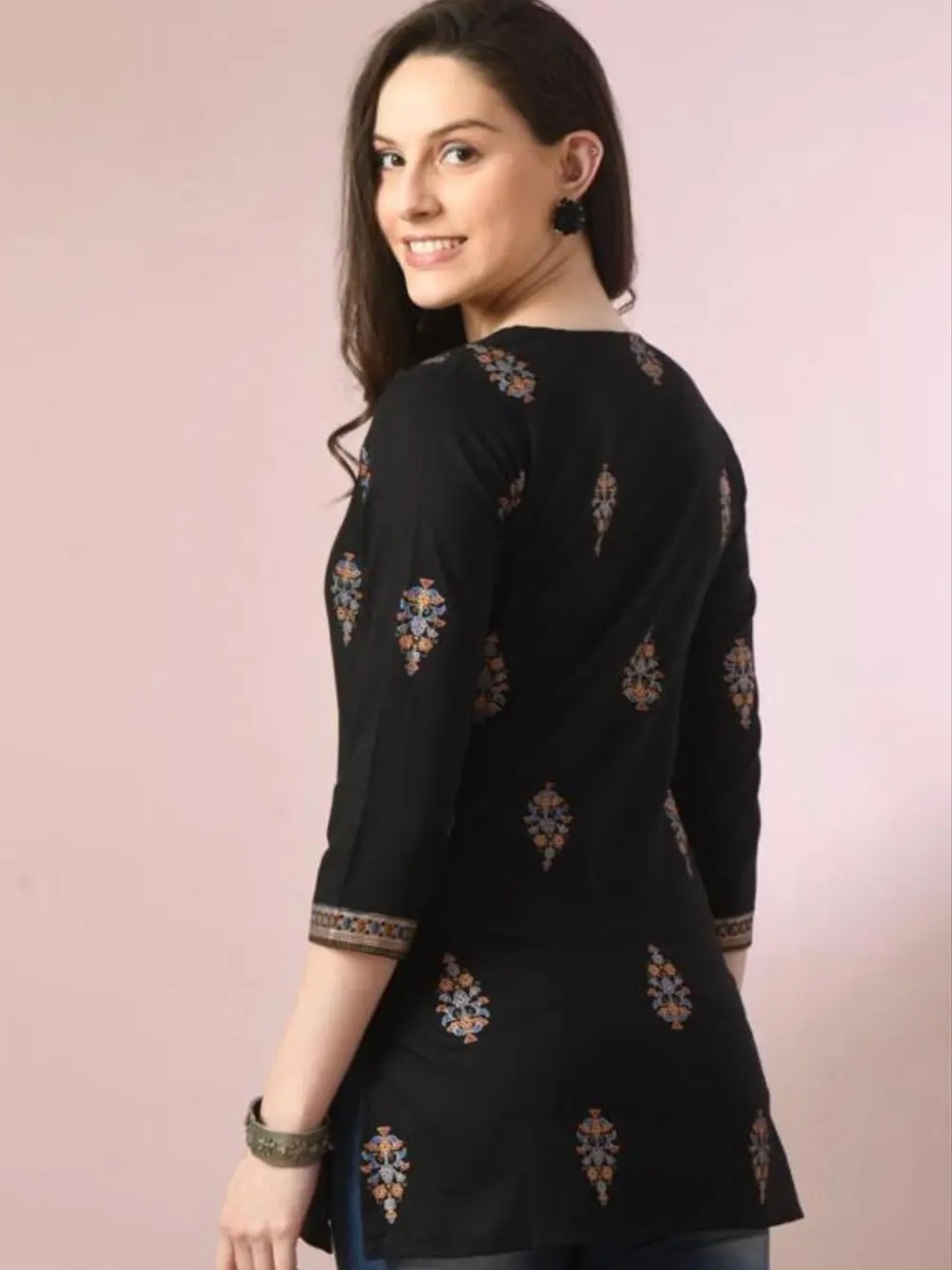 Product Name: Black Ethnic Printed Short Kurti for Women