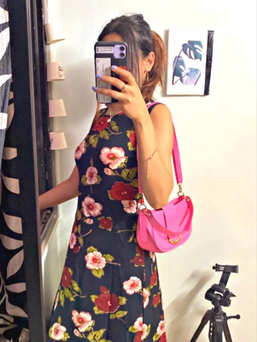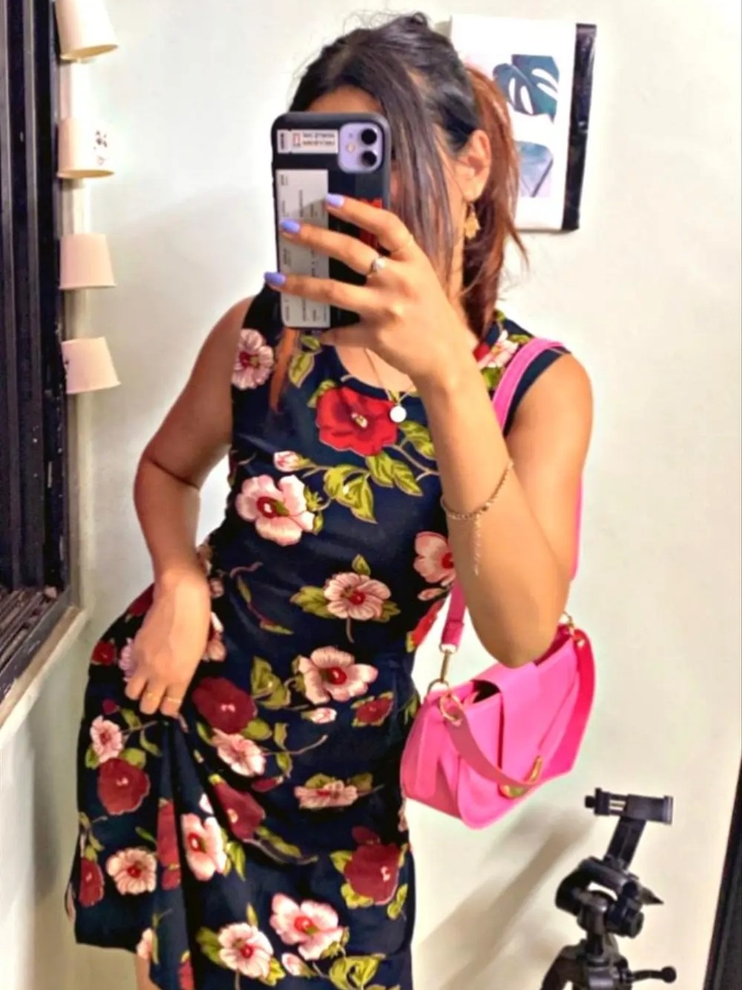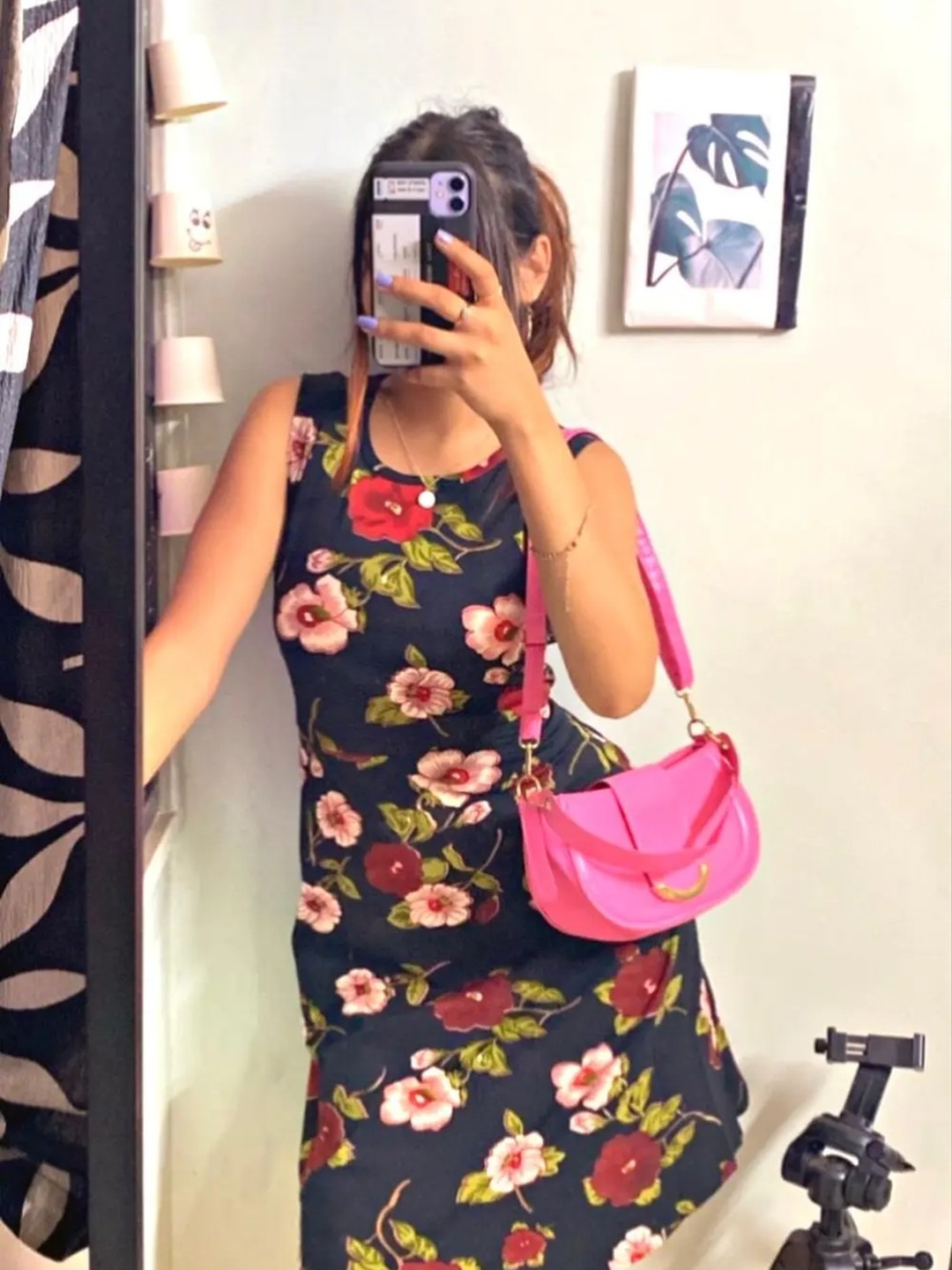 Black Floral Midi A-line Dress for Women that has vibrant floral prints and a flare style. This floral midi A-line dress can be styled with quirky accessories for a perfect summer vibe.