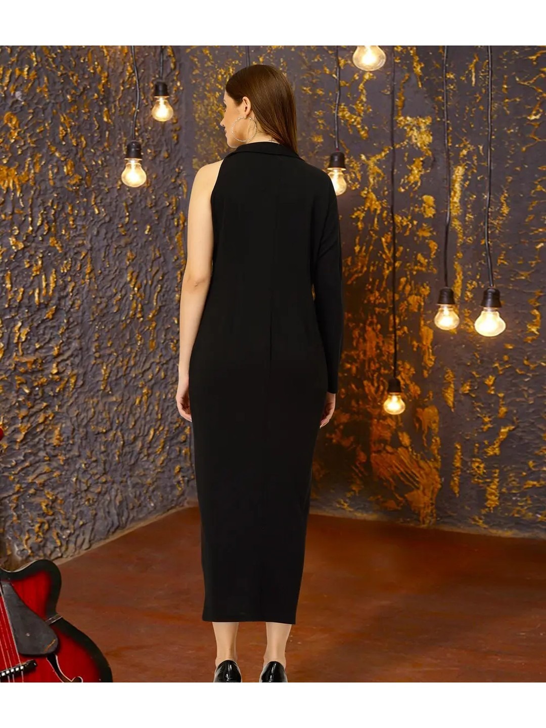 Product Name: Black One-Shoulder Sequin Midi Dress for Women