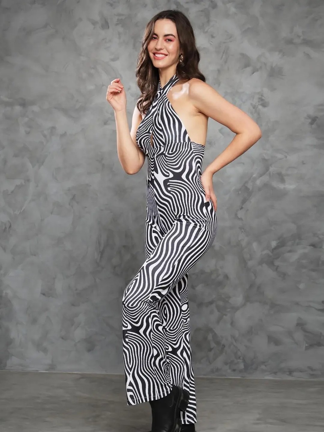 Product Name: Black Printed Halter Neck Jumpsuit for Women