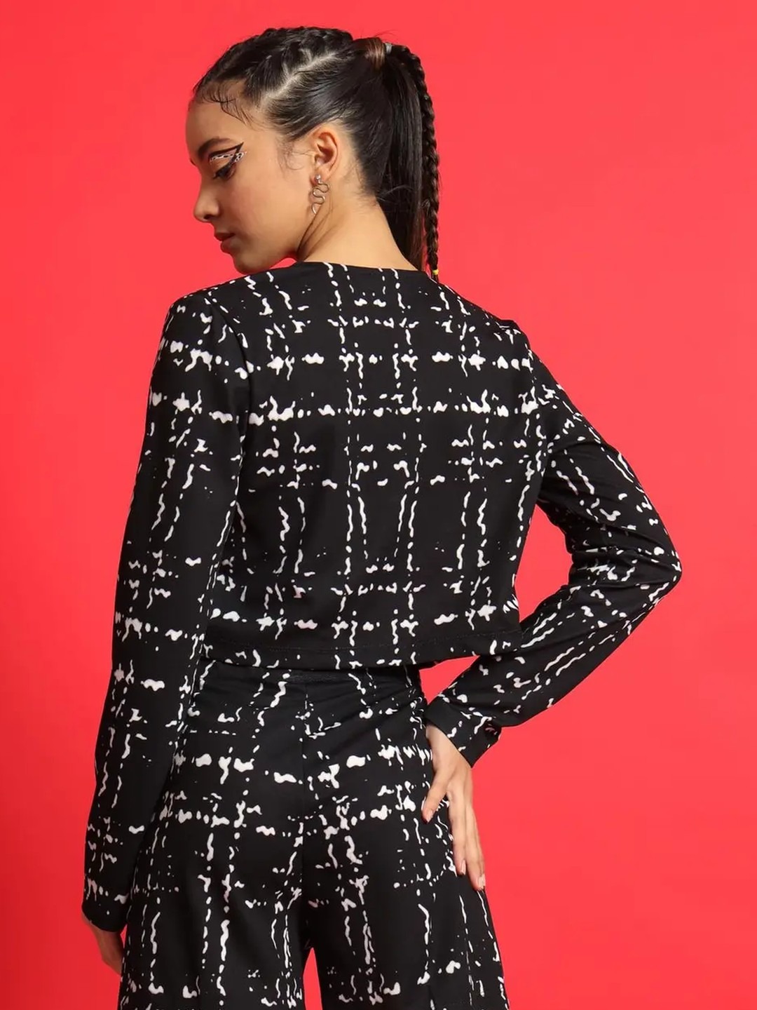 Product Name: Black Printed Jacket and Shorts Co-ord Set for Women