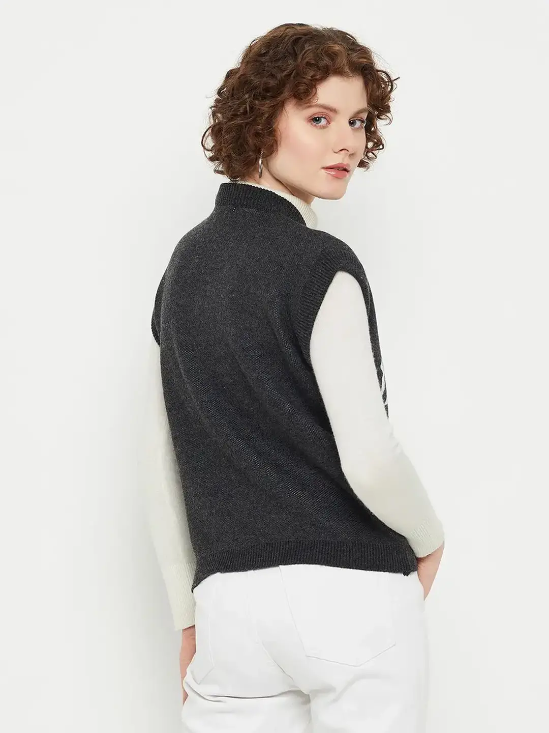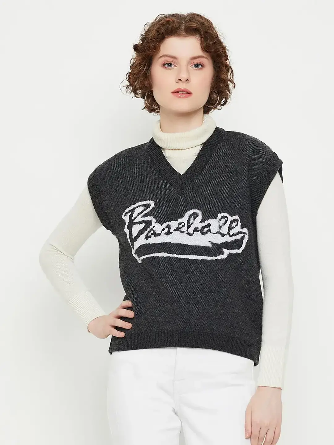 Product Name: Black Printed Relaxed Sweater Vest for Women