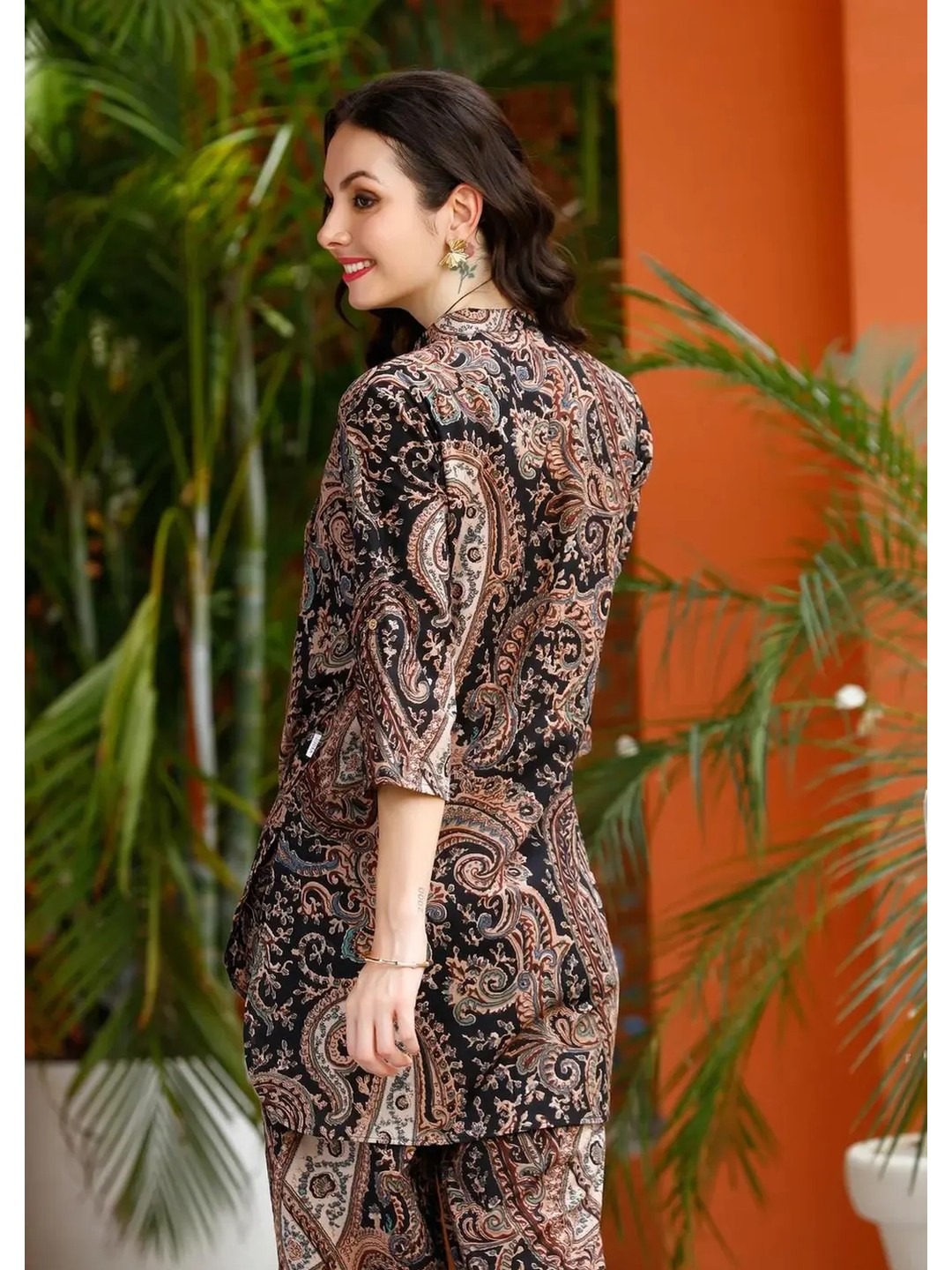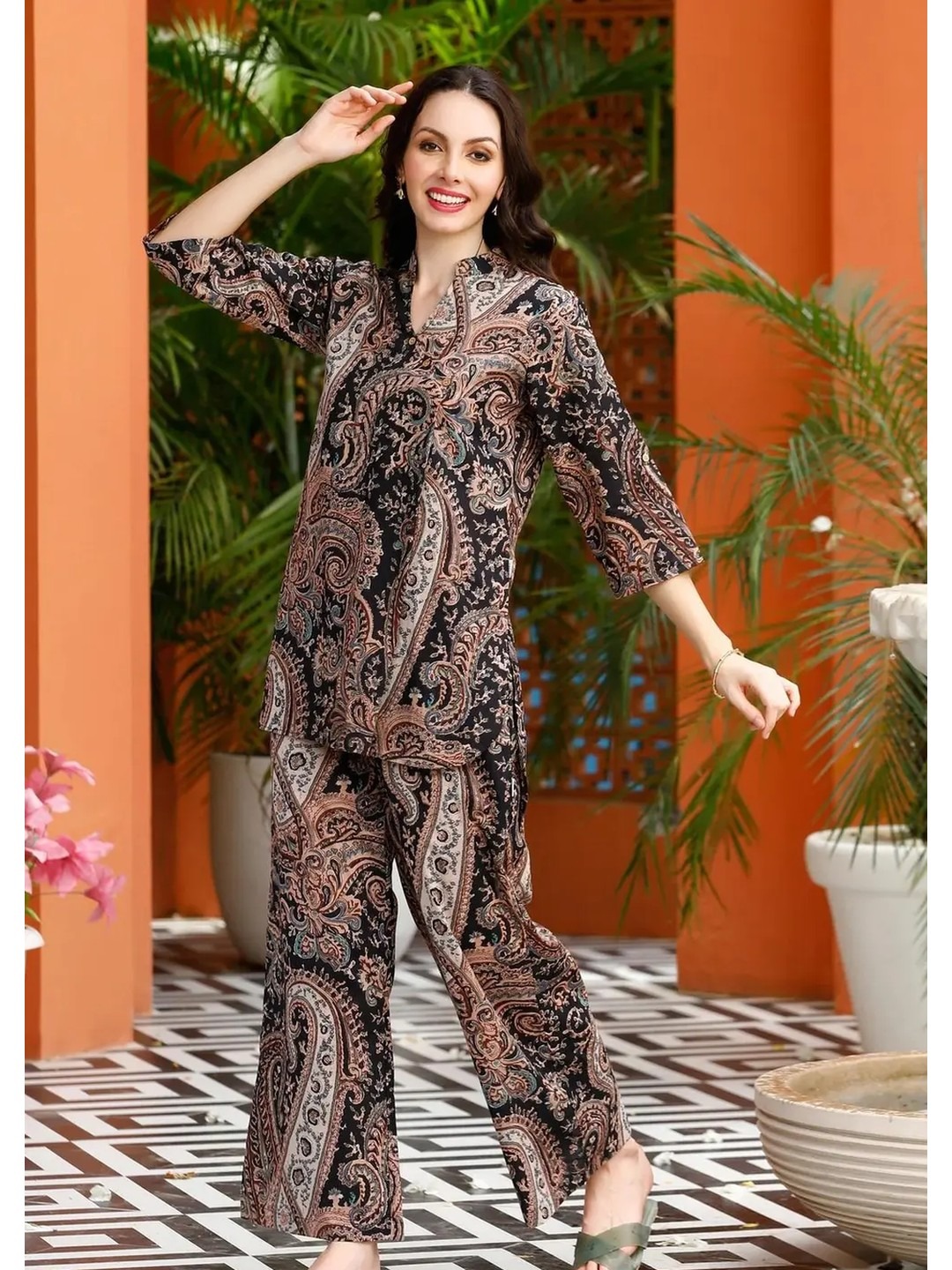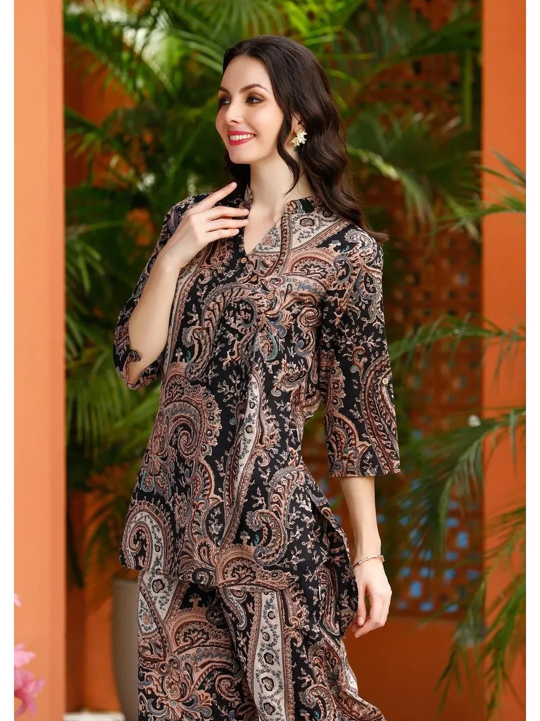 Product Name: Black Printed Tunic Top and Palazzo Co-ord Set for Women