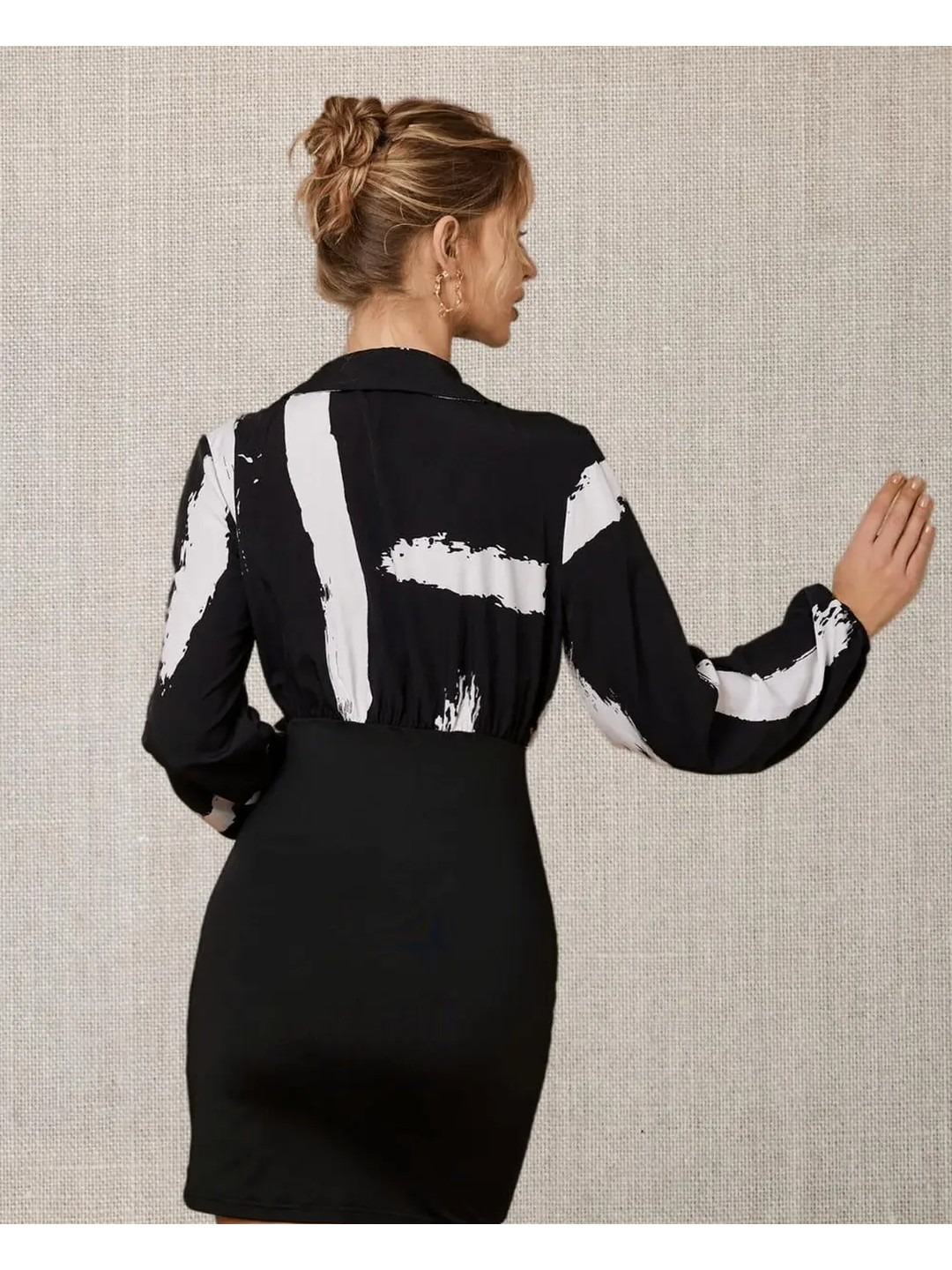 Product Name: Black Printed Wrap Bodycon Dress for Women