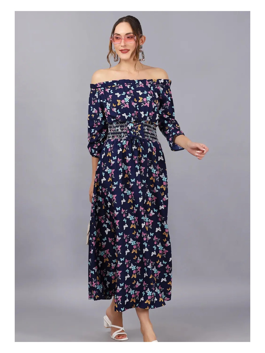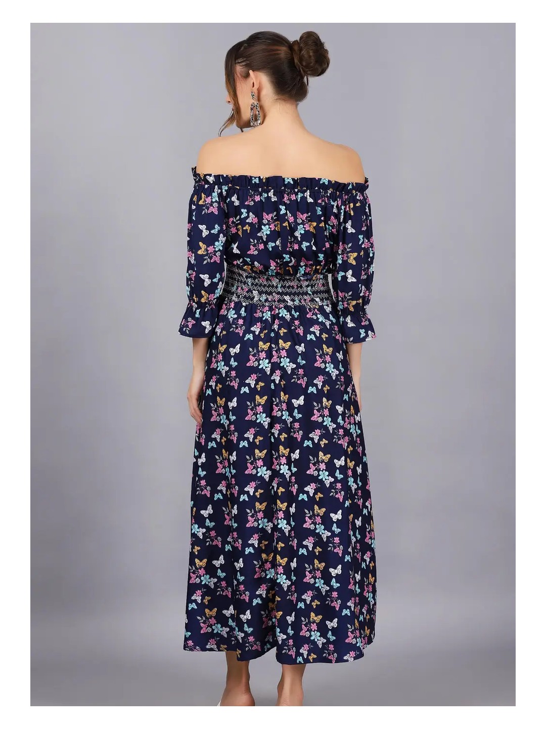Product Name: Blue Floral Off-Shoulder A-line Maxi Dress for Women