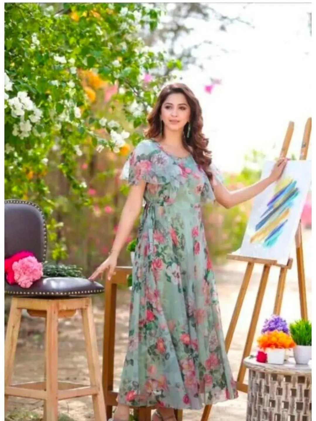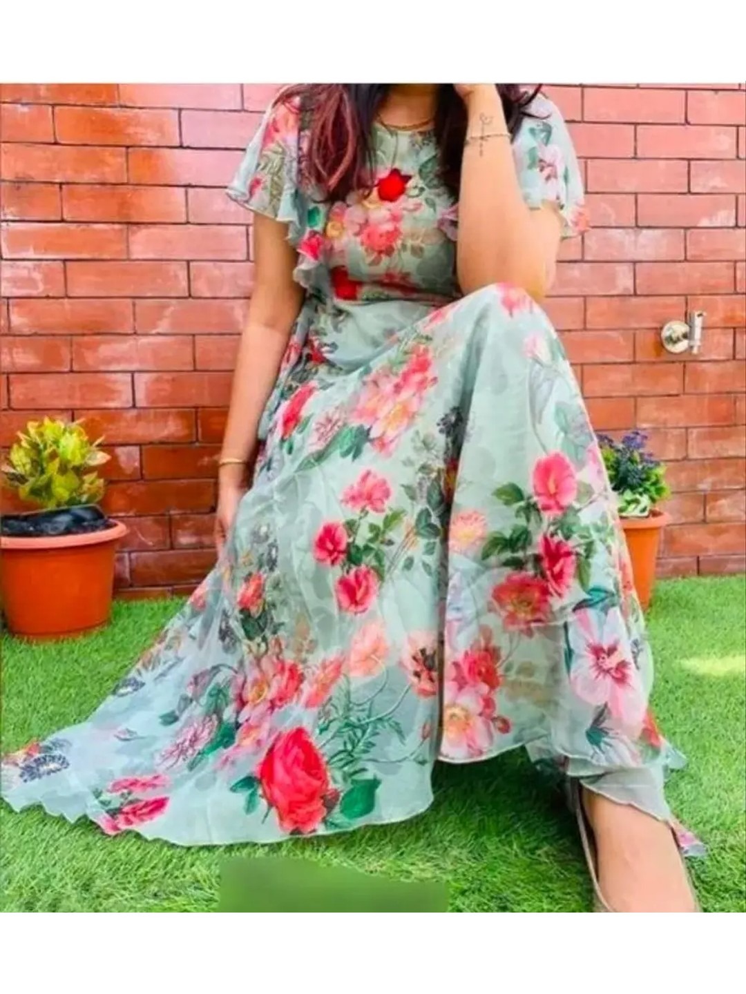 Product Name: Blue Floral Ruffle Maxi Dress for Women