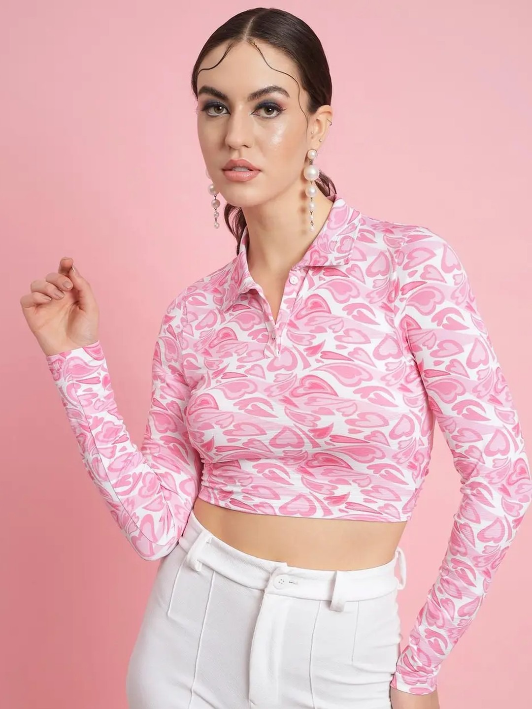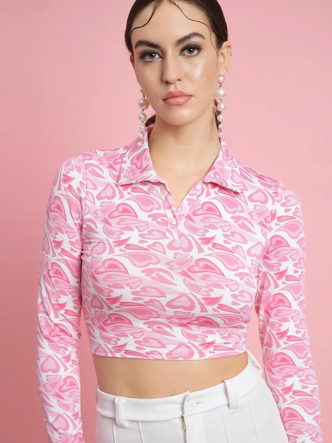 Name: Blush Pink Collared Full Sleeve Crop Top