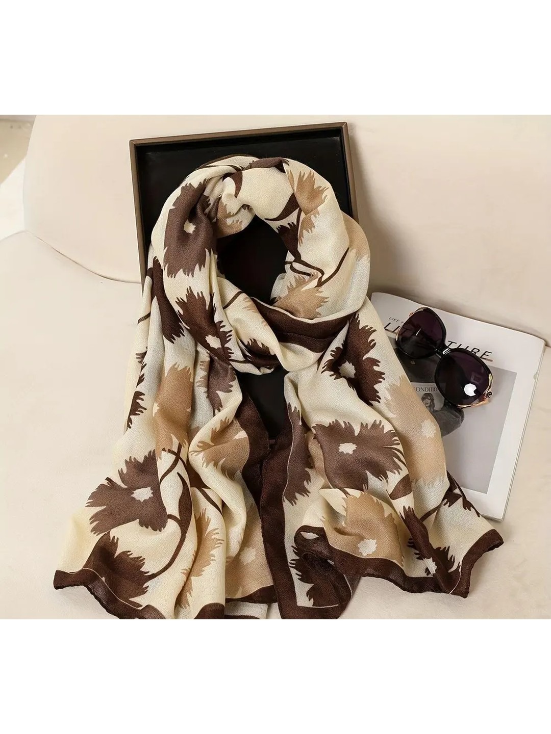 Brown Floral Viscose Scarf for Women that has vibrant colours, apt length, and a soft feel. Made with viscose fabric, it is durable, super soft and easy to style for an enhanced look.
