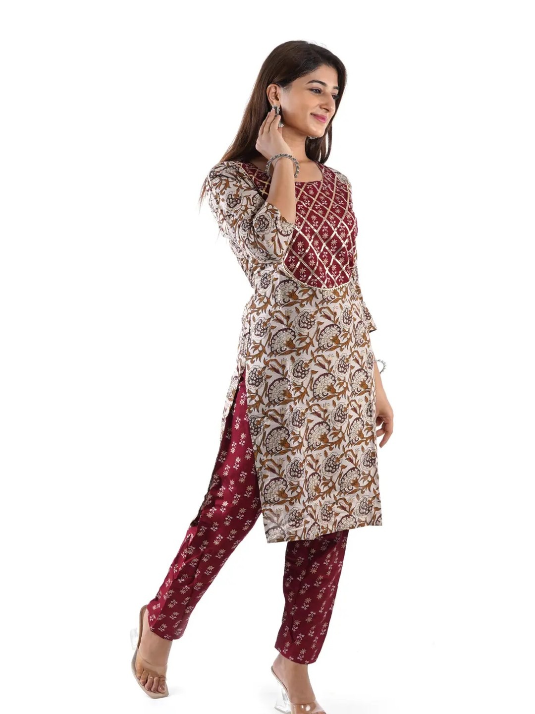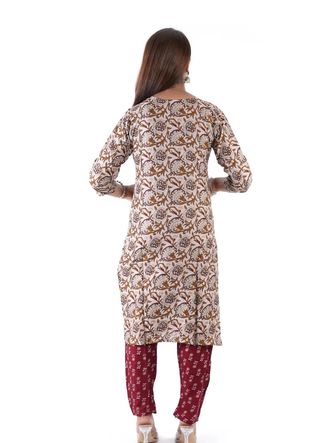 Product Name: Brown Indian Prints Embellished Kurta Set for Women