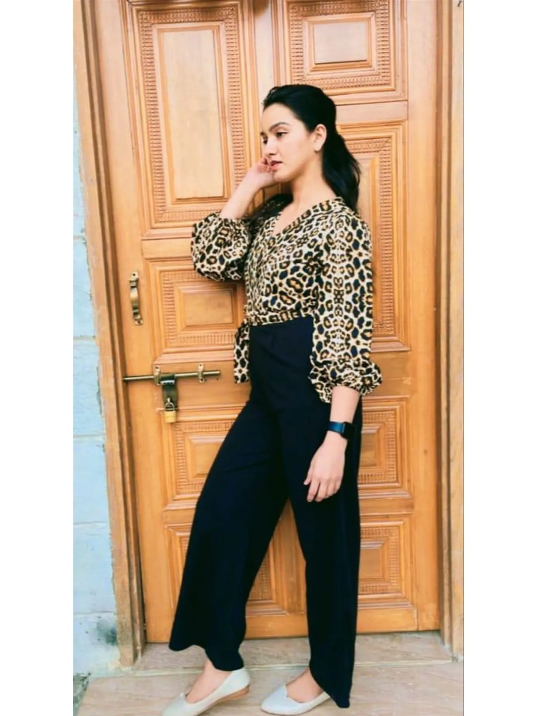 Product Name: Brown Leopard Jumpsuit Top for Women