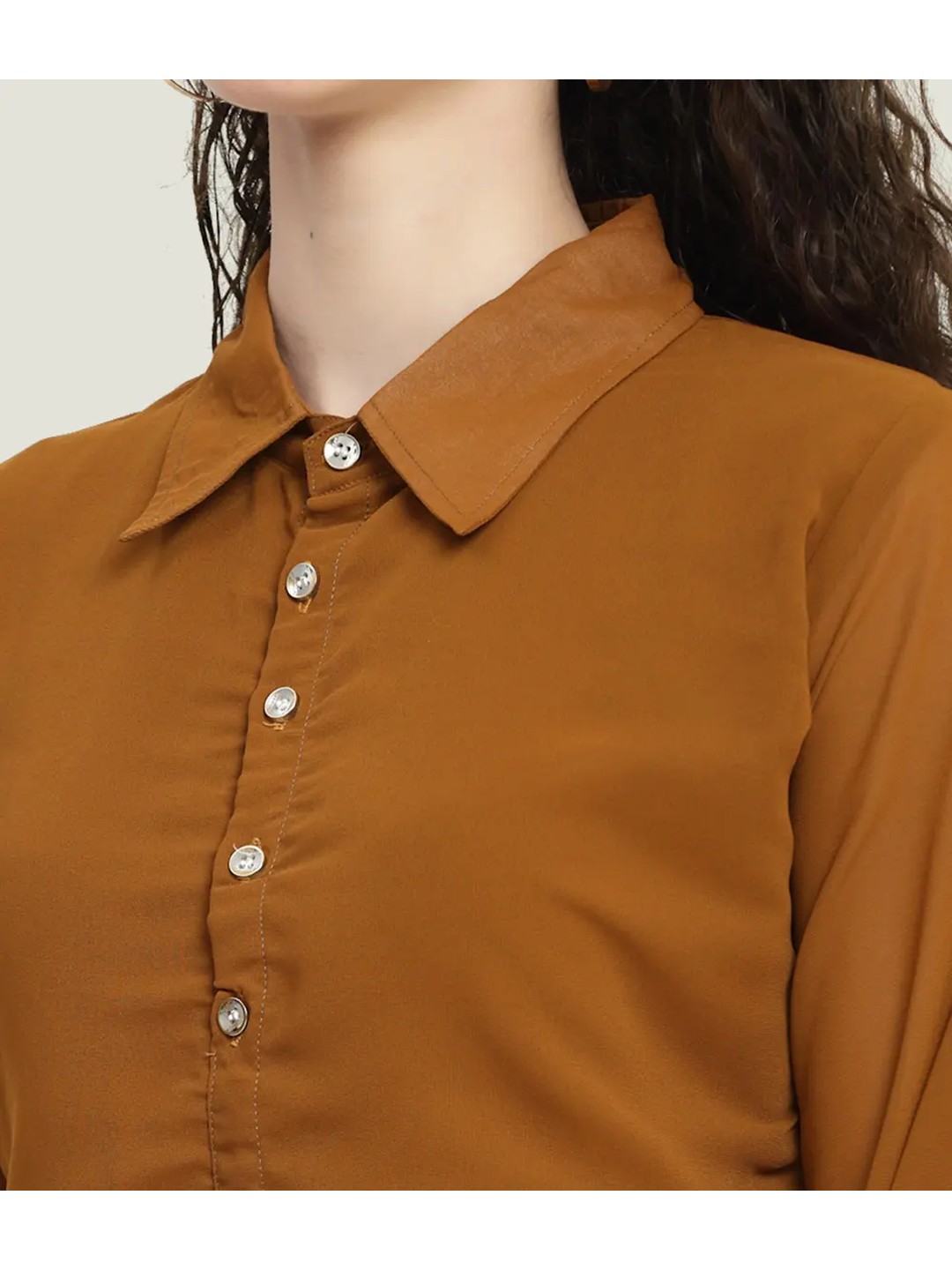 Product Name: Brown Tie-Up Mini Shirt Dress for Women