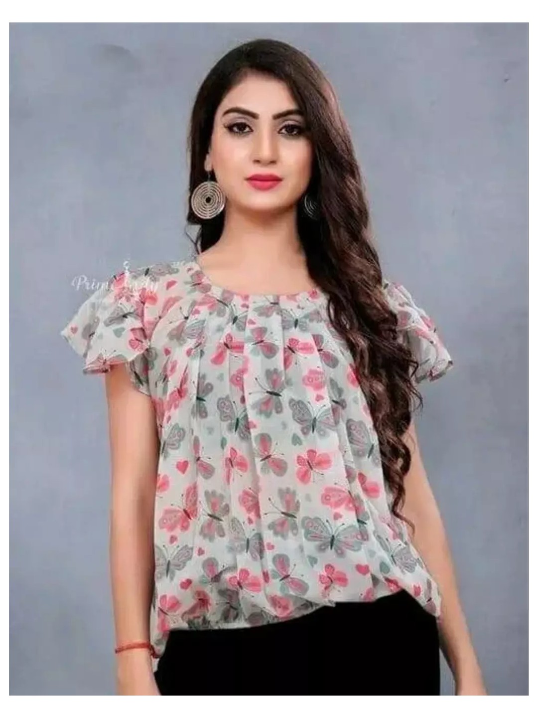 Product Name: Butterfly Printed Multicolour Regular Balloon Top for Women