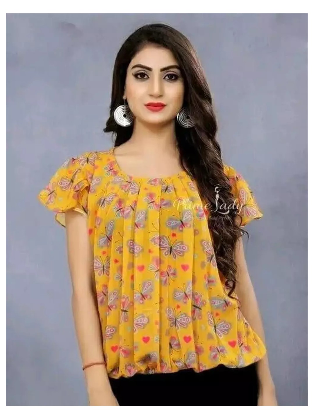 Product Name: Butterfly Printed Yellow Regular Balloon Top for Women