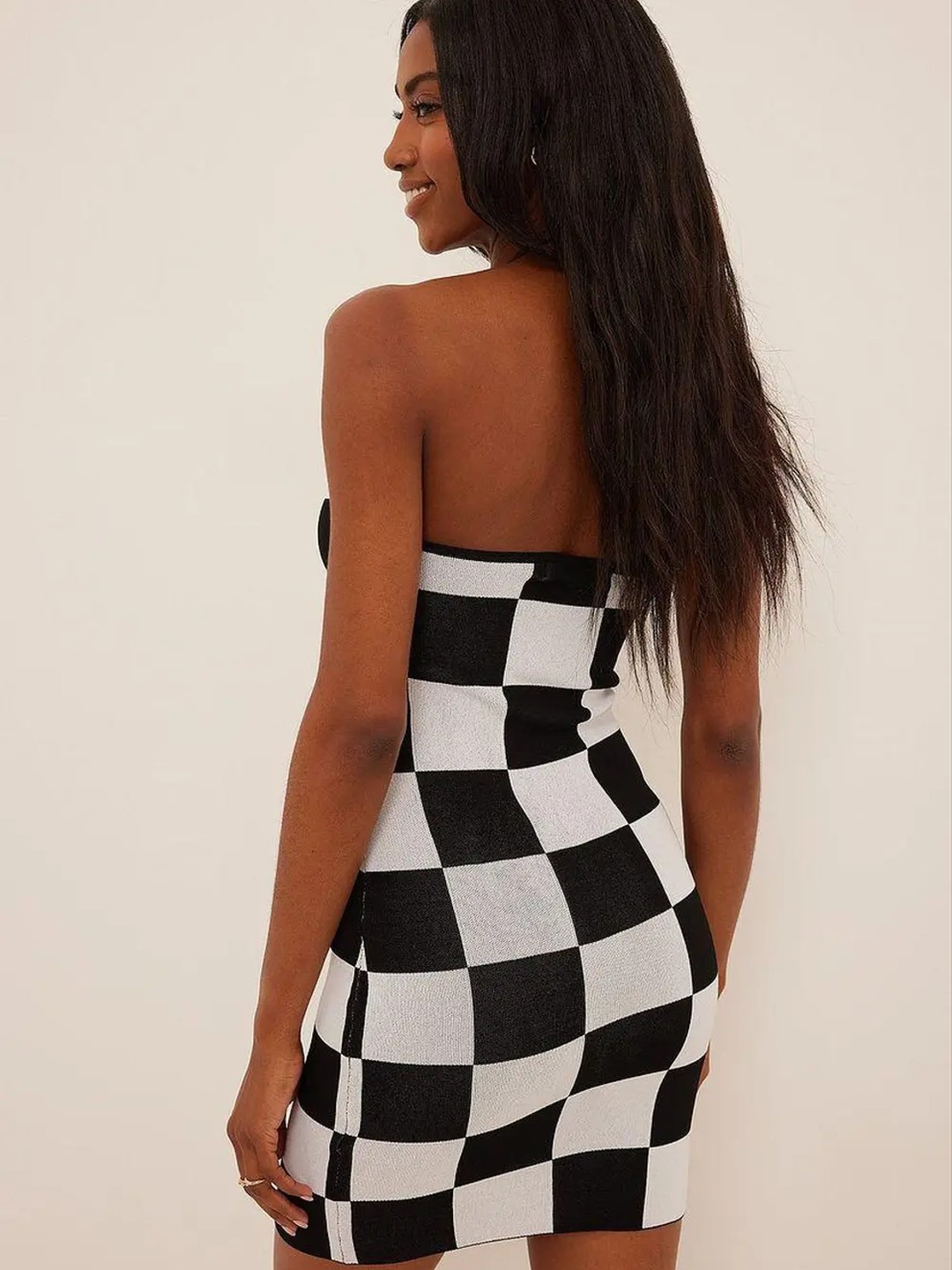 Turn heads in our Checkered Halter Keyhole Neck Mini Dres. Featuring a bold black and white checkered pattern, this Checkered Halter Keyhole Neck Mini Dress is perfect for a night out or a stylish party. The keyhole cutout adds a touch of flirtatious flair, making it an essential addition to your wardrobe for any occasion where you want to stand out.