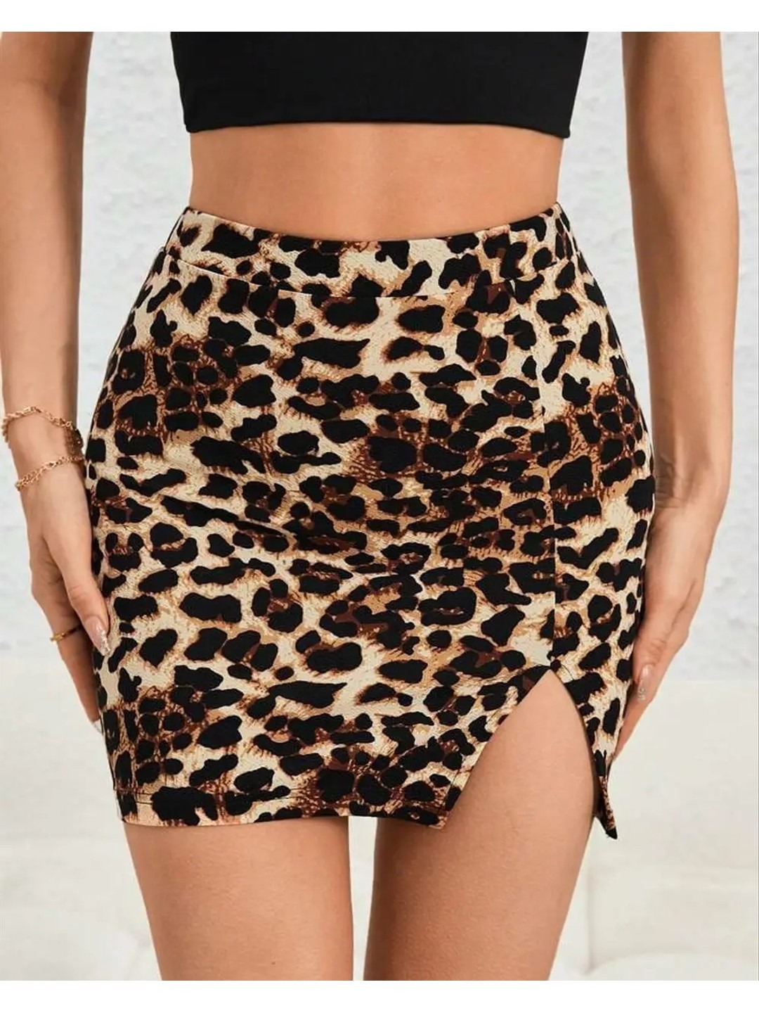 Product Name: Cheetah Printed Bodycon Mini Slit Skirt for Women