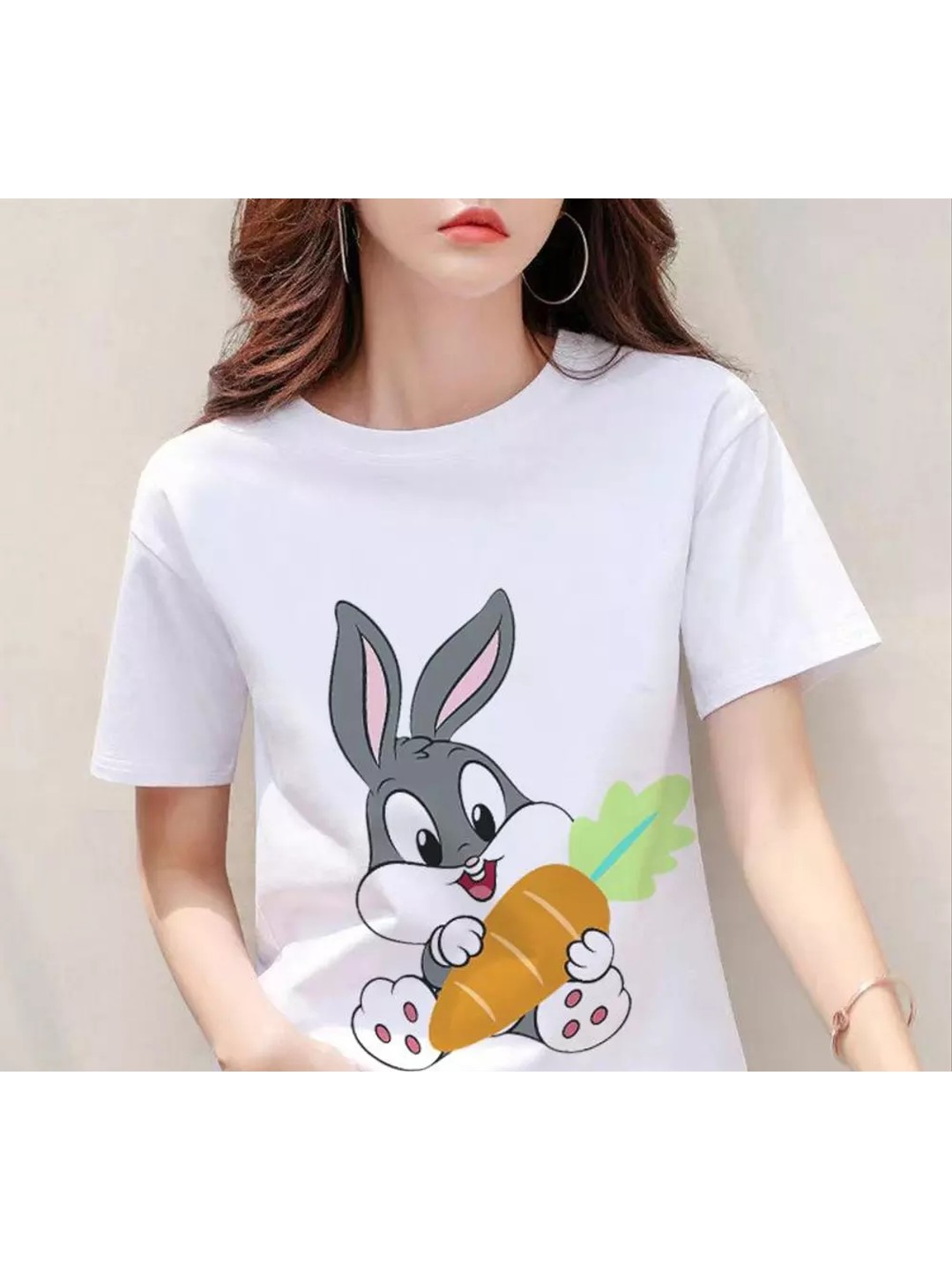 Product Name: Cute Rabbit Printed Oversized T-shirt for Women