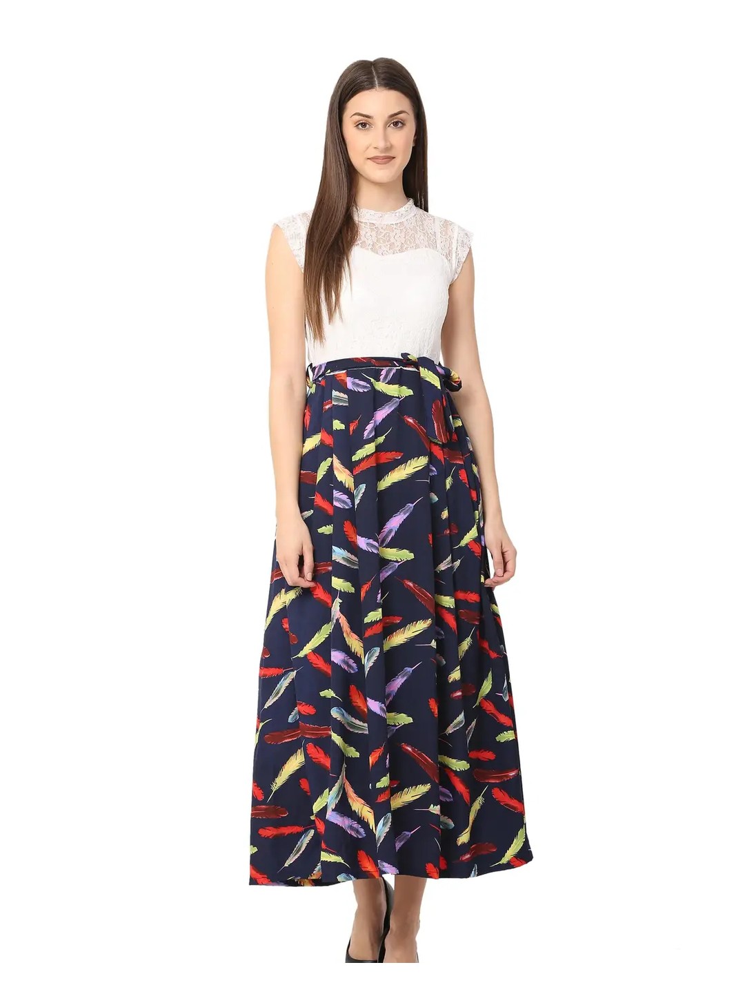 Product Name: Dark Blue Floral Net Maxi Dress for Women