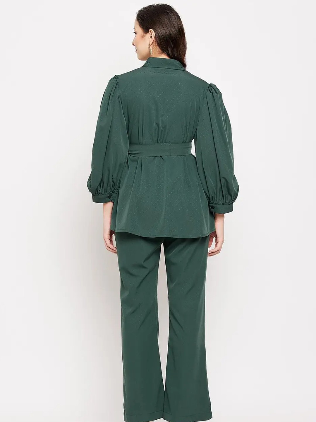 Product Name: Dark Green Shirt Co-ord Set for Women