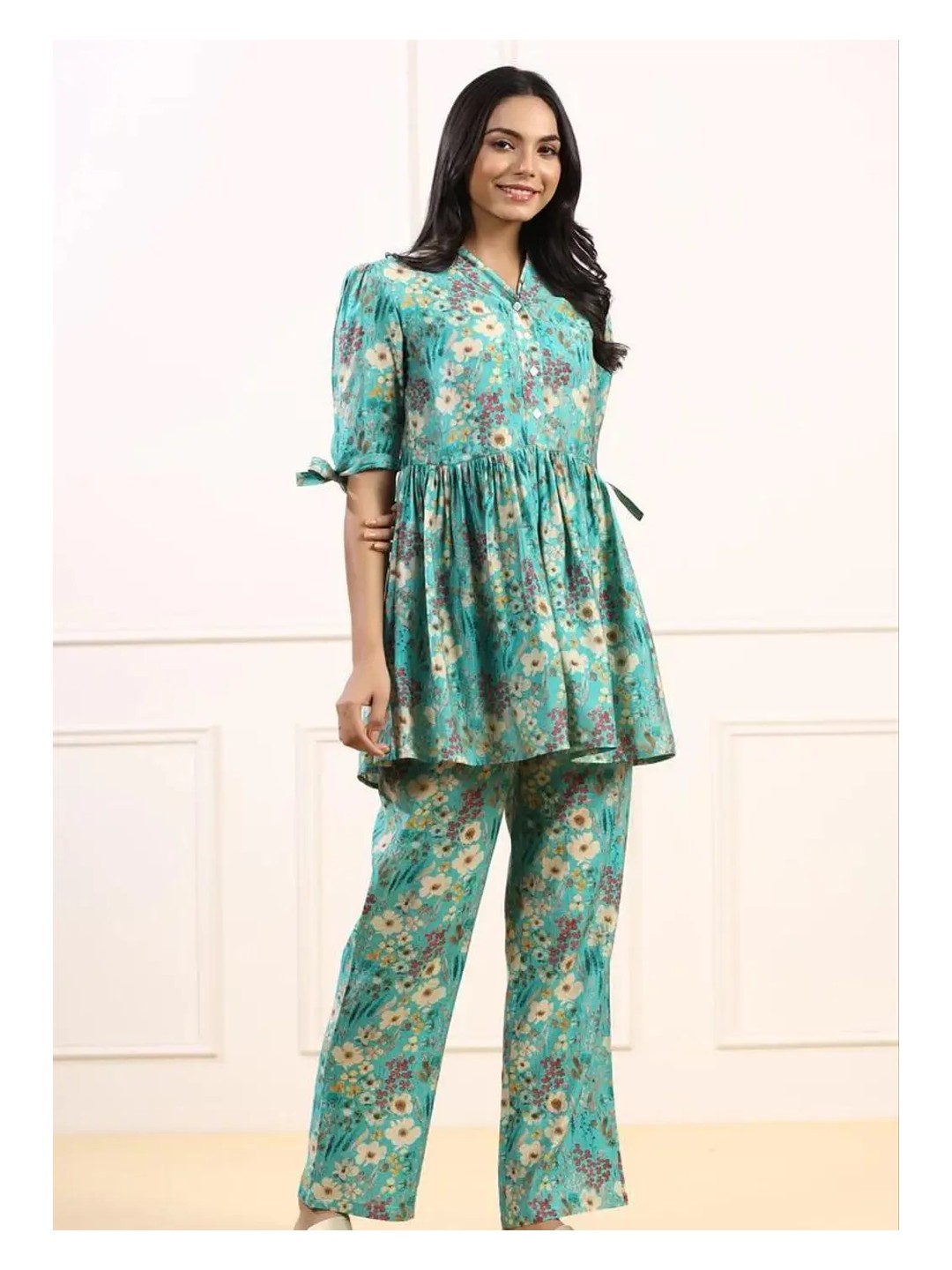 Product Name: Ethnic Printed Mint Peplum Tunic Co-ord Set for Women