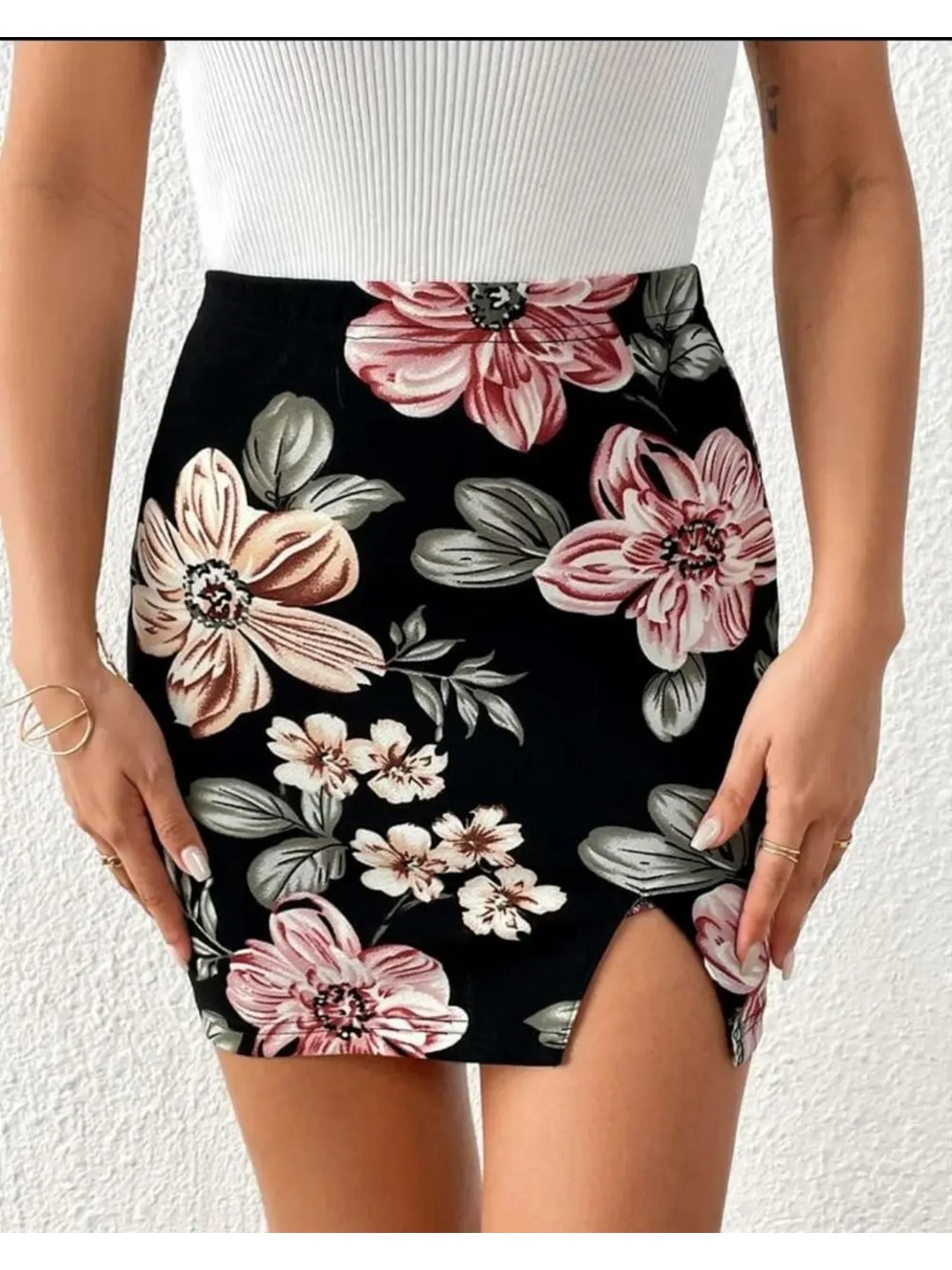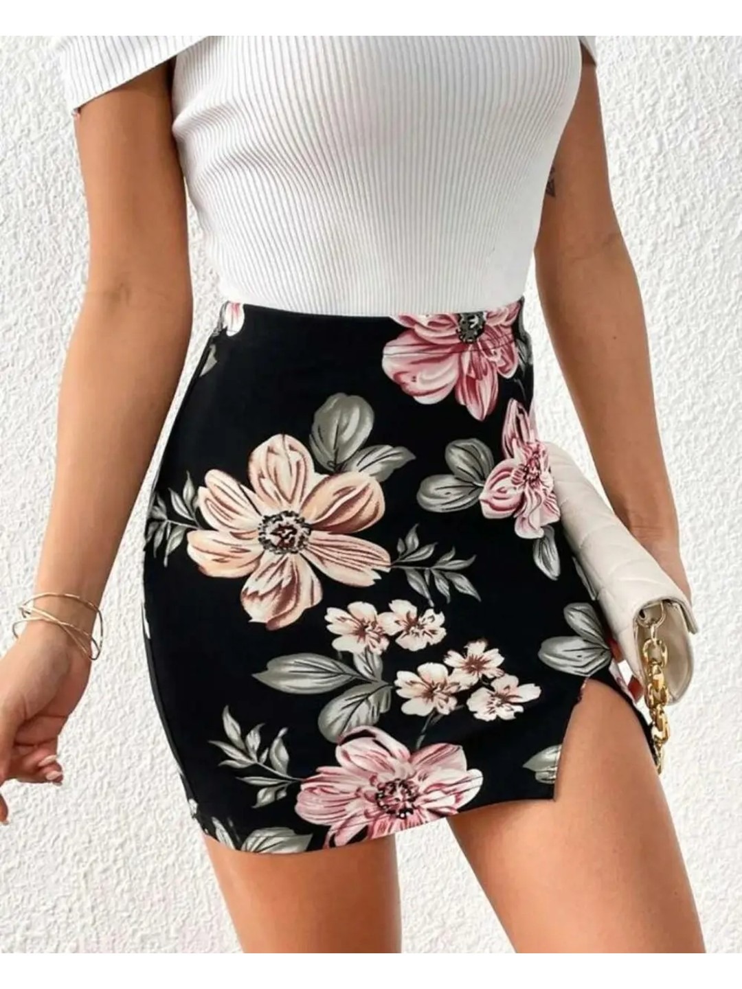 Product Name: Floral Bodycon Mini Slit Skirt for Women