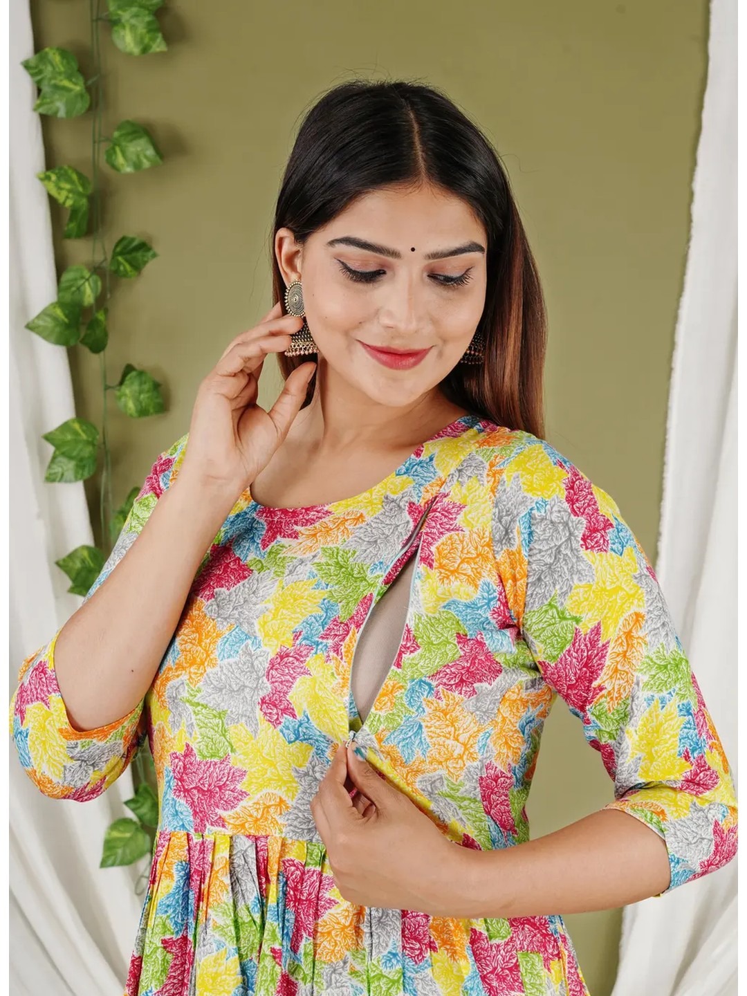 Product Name: Floral Multicolour Maternity Feeding Anarkali Kurti for Women