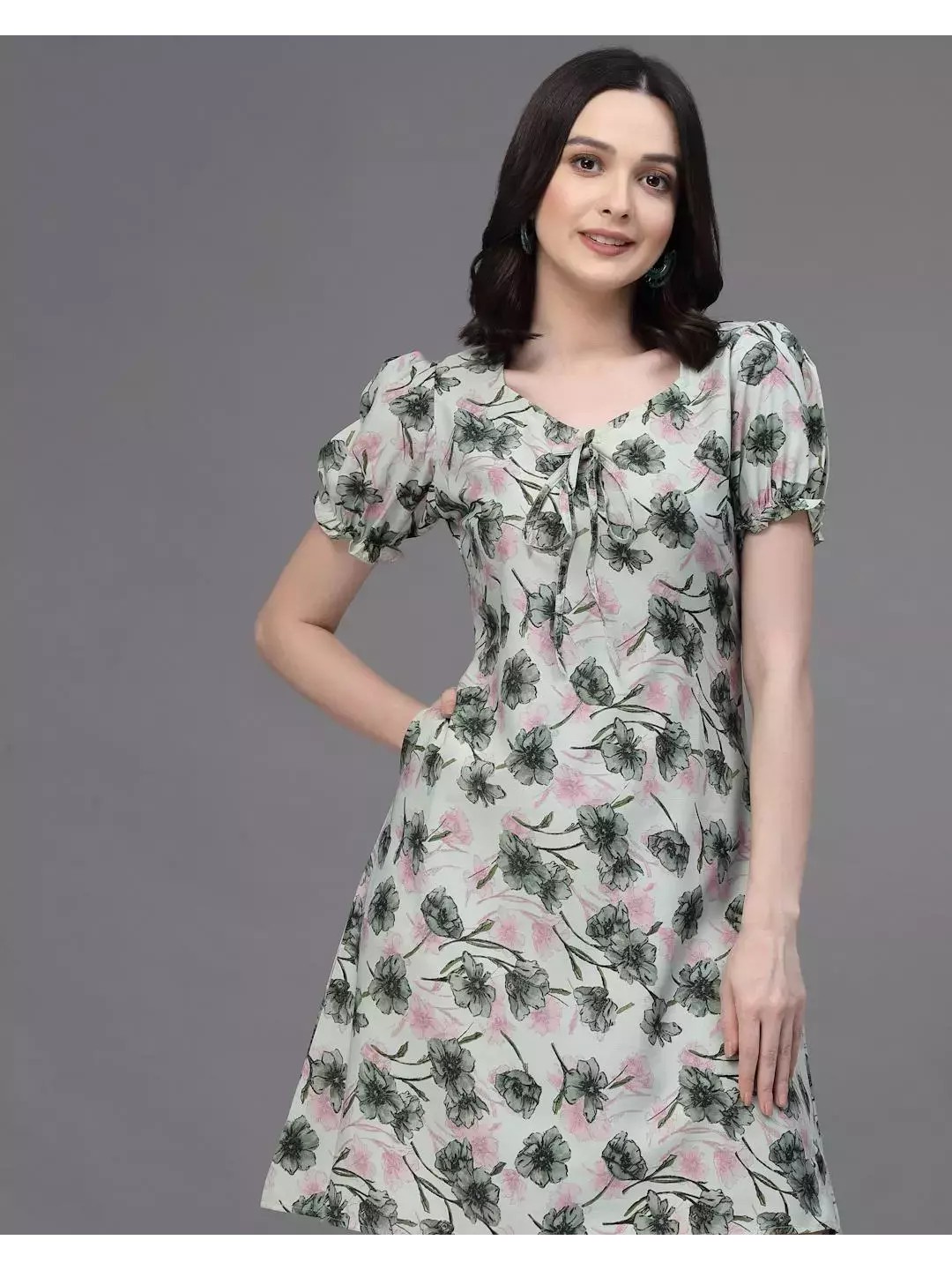 Floral shift dress with fit and flare feature, puff sleeves and above knee length that exudes a youthful chic look. Style this gorgeous shift dress with sneakers and cute sling bag for a laidback stylish casual look.