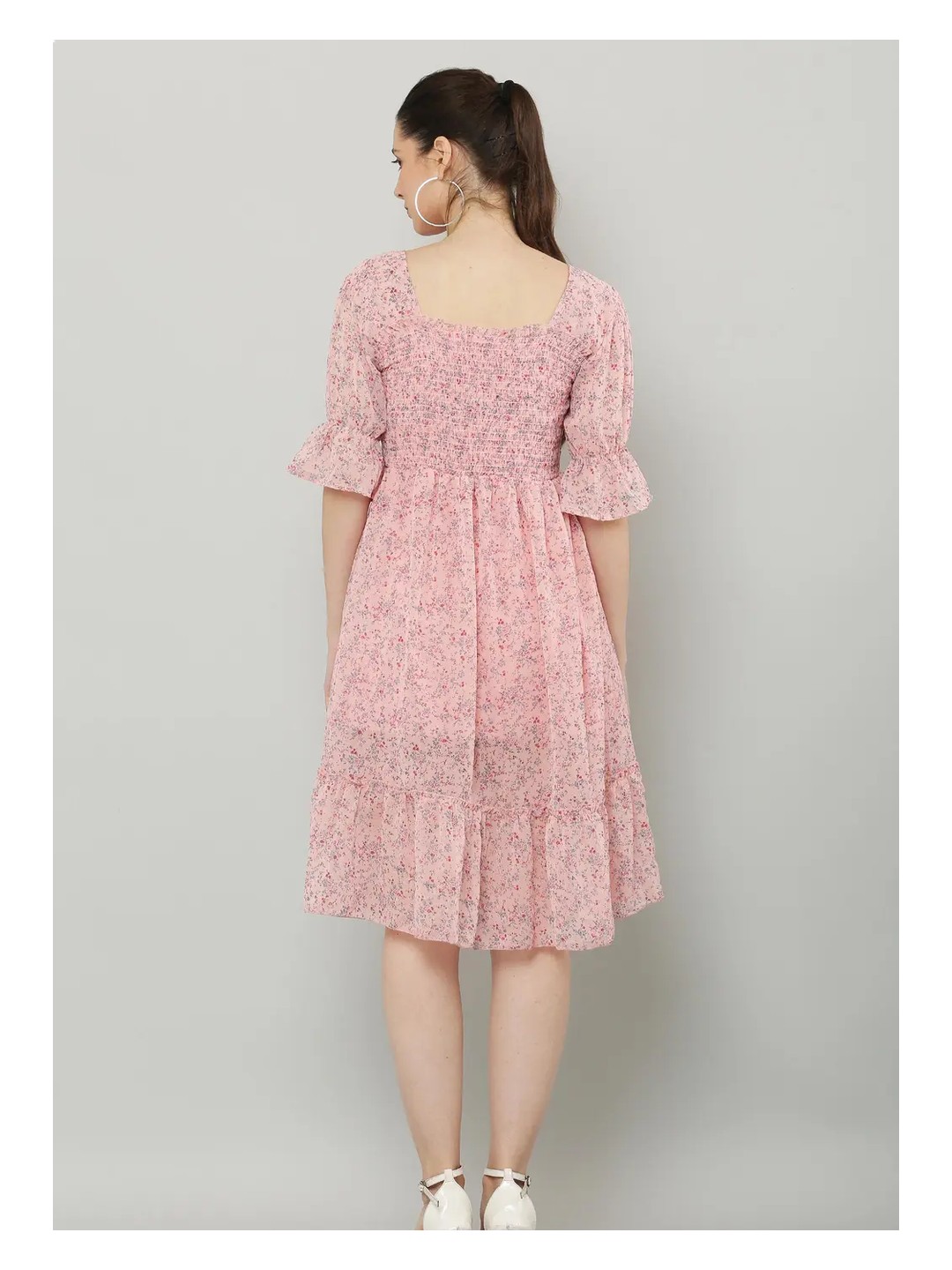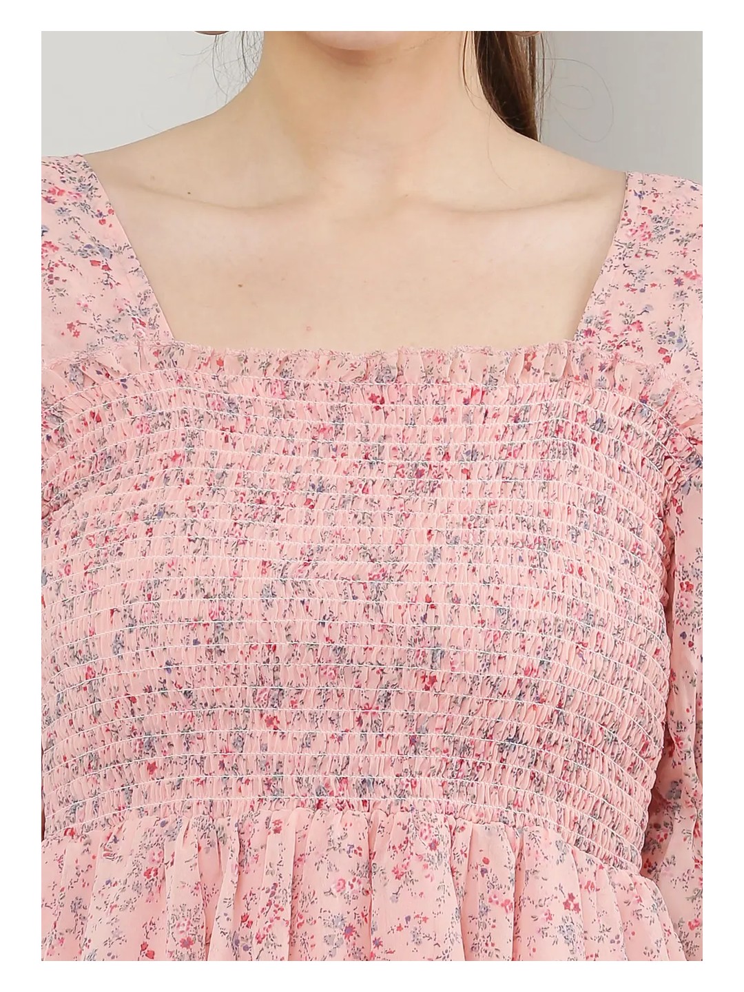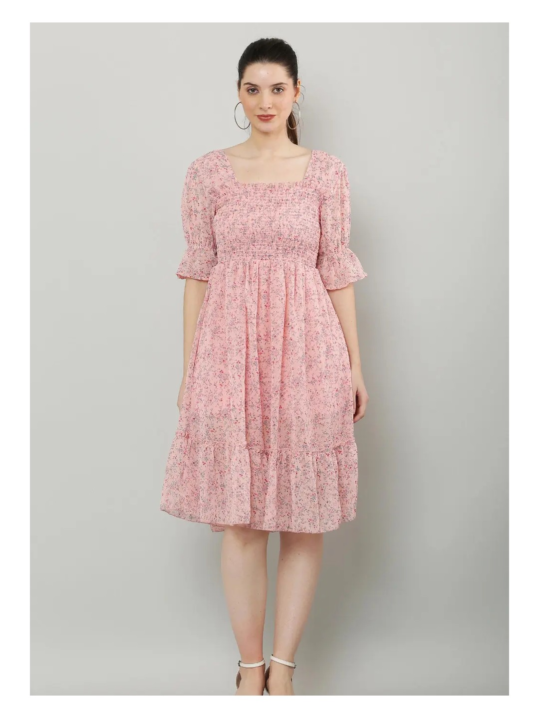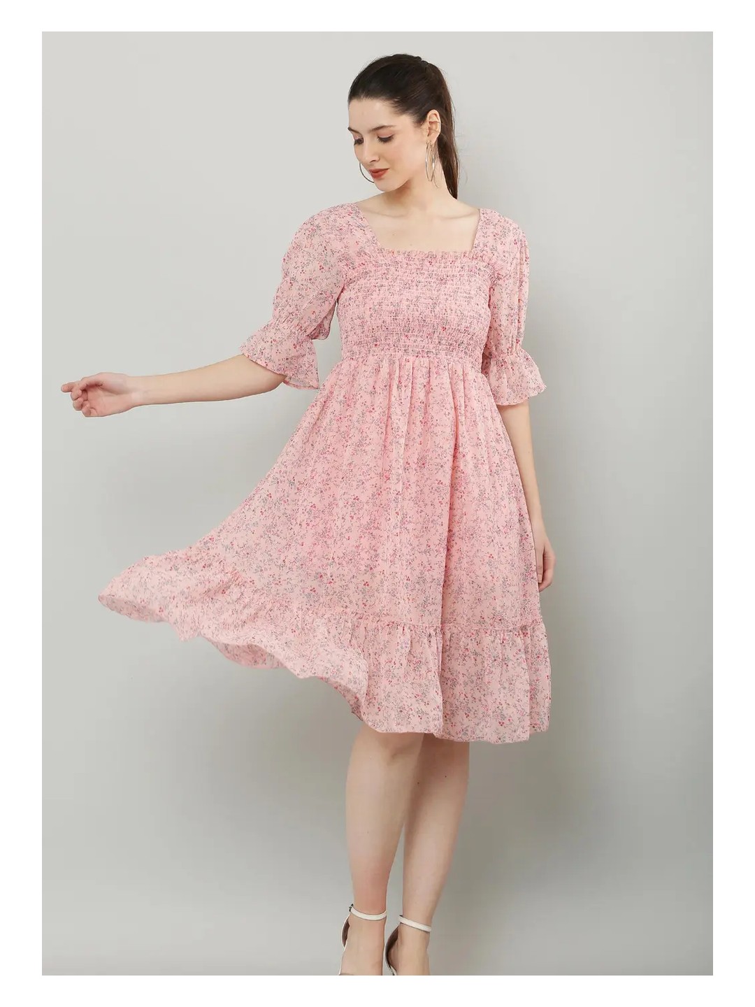 Product Name: Floral Smocked Ruffle Midi Dress for Women