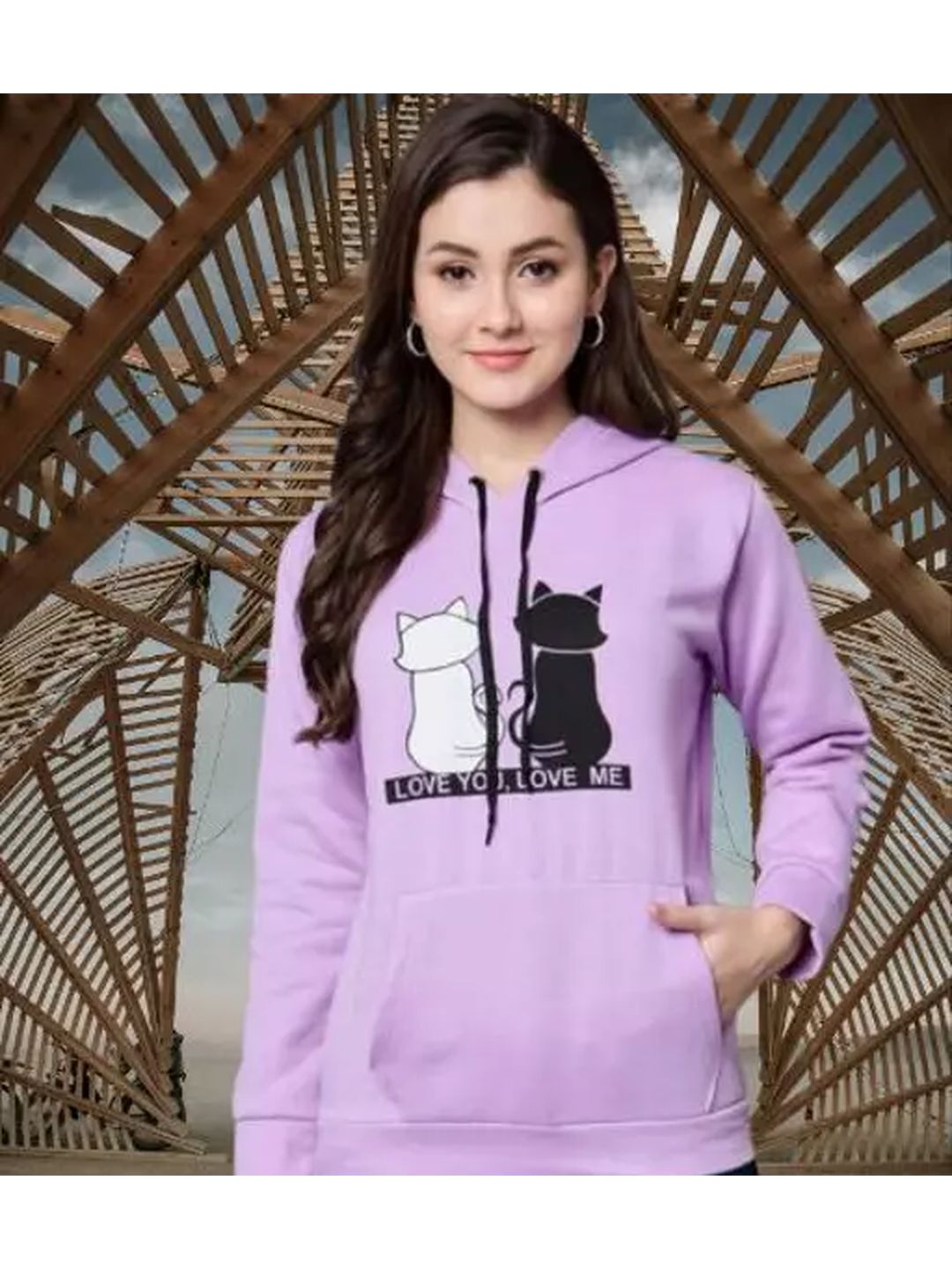 Product Type: Graphics Print Hoodie for WomenFabric: FleeceColour: Lavender Sleeve Length: Long SleevesPattern: SolidSizes: S (Bust Size: 36 in, Length Size: 20 in)M (Bust Size: 38 in, Length Size: 20 in)L (Bust Size: 40 in, Length Size: 21 in)XL (Bust Size: 42 in, Length Size: 21 in)Country of Origin: India