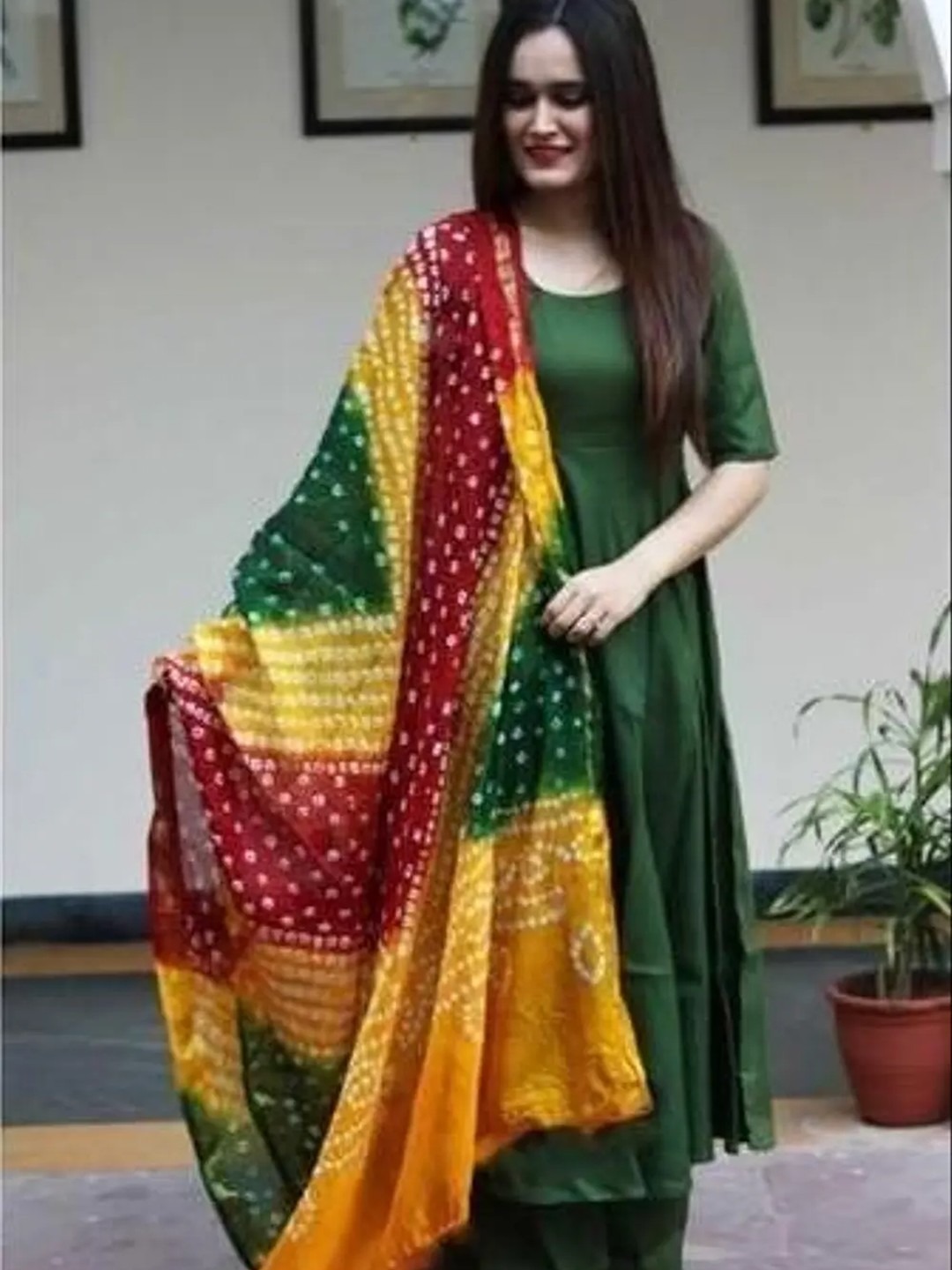 Product Name: Green Bandhani Anarkali Kurta Set for Women