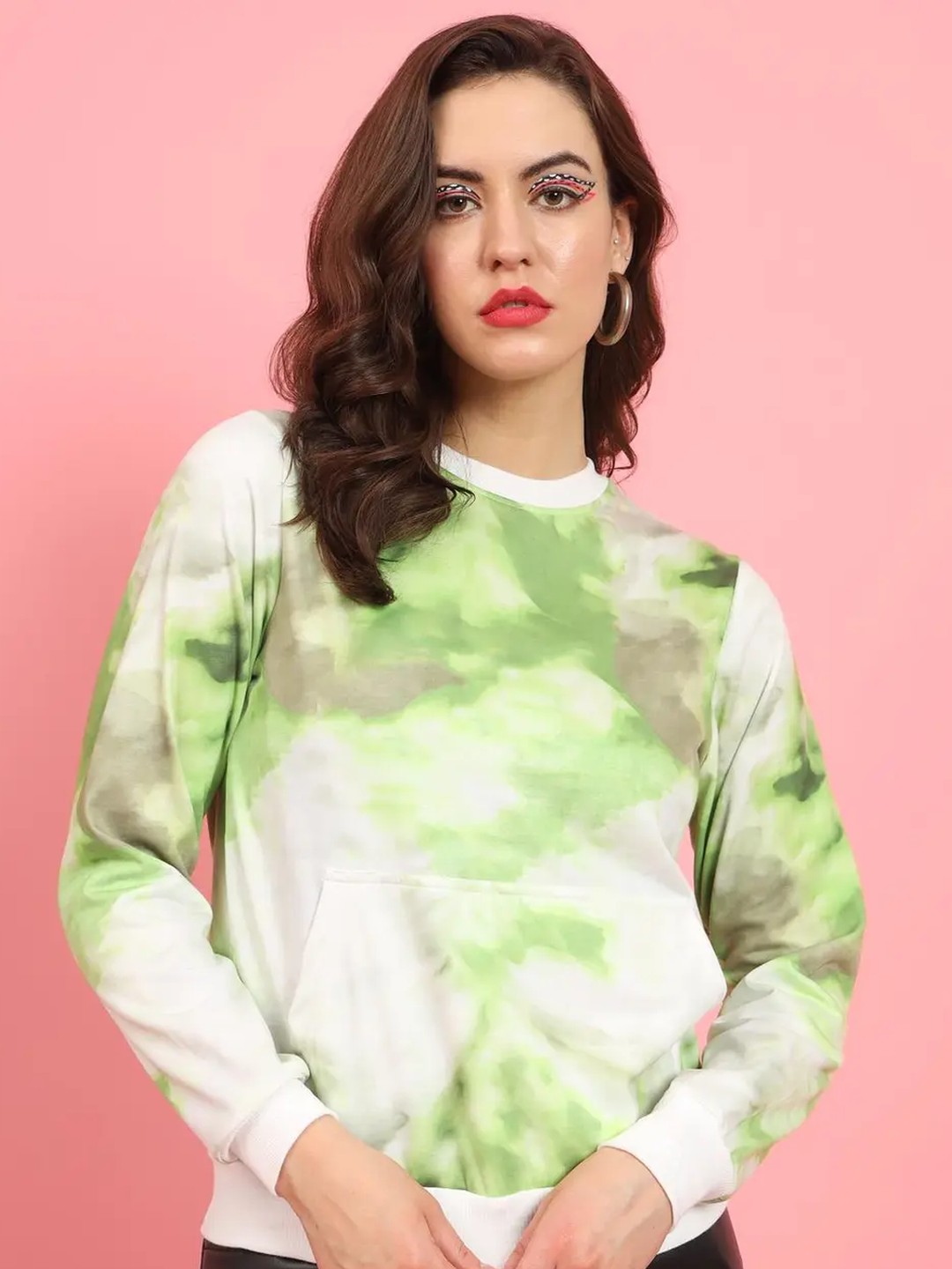 Product Name: Green Tie-Dye Long Sleeve T-shirt for Women