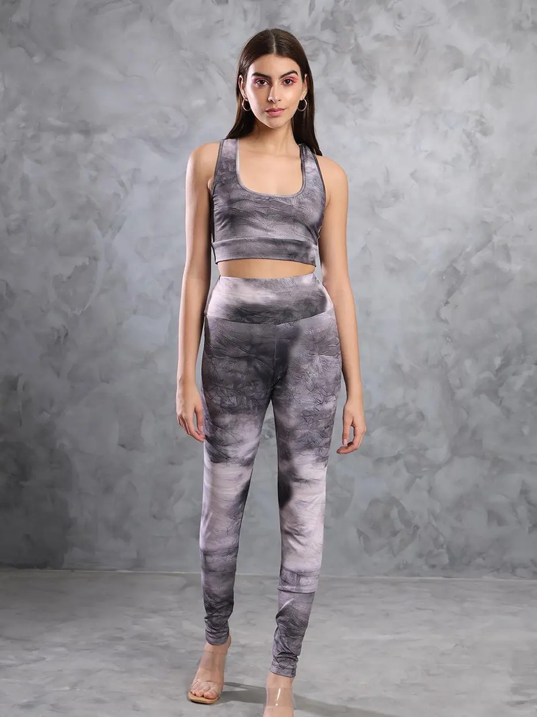 Product Name: Grey Tie-Dye Top and Pants Co-ord Set for Women