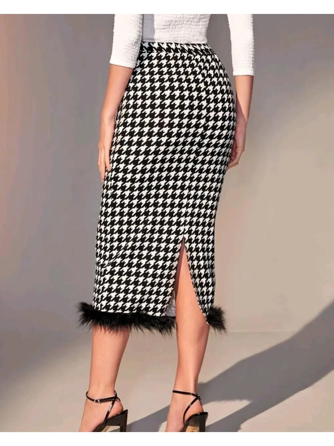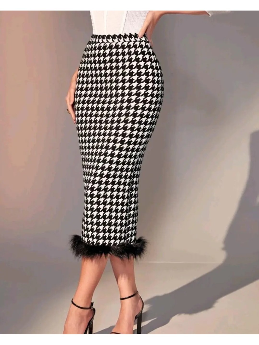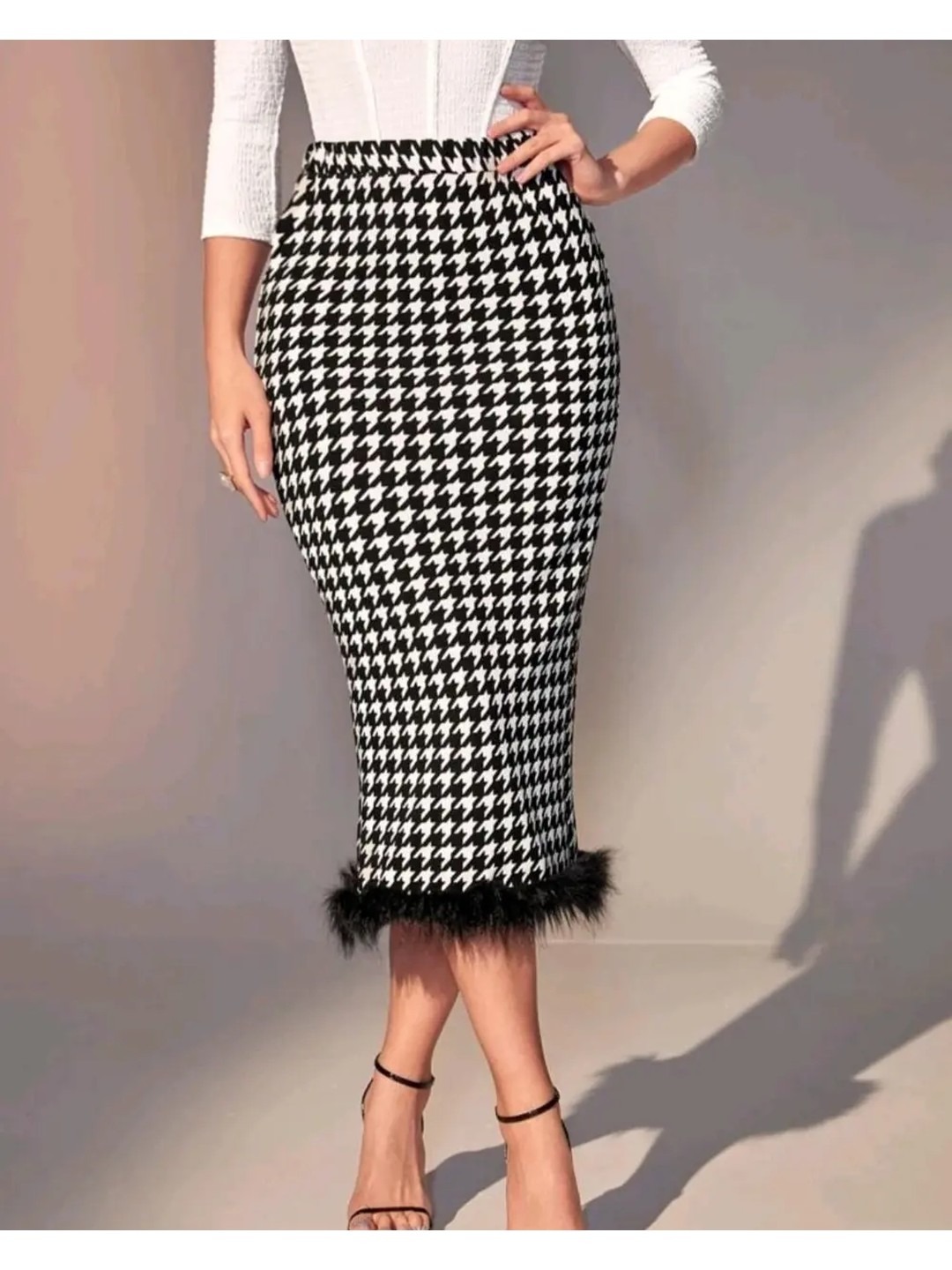 Product Name: Houndstooth Faux Midi Pencil Skirt for Women