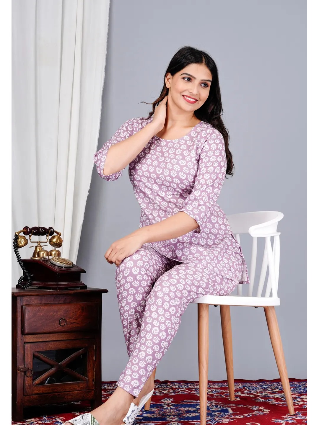 Product Name: Lavender Floral Kurta Pyjama Night Suit for Women