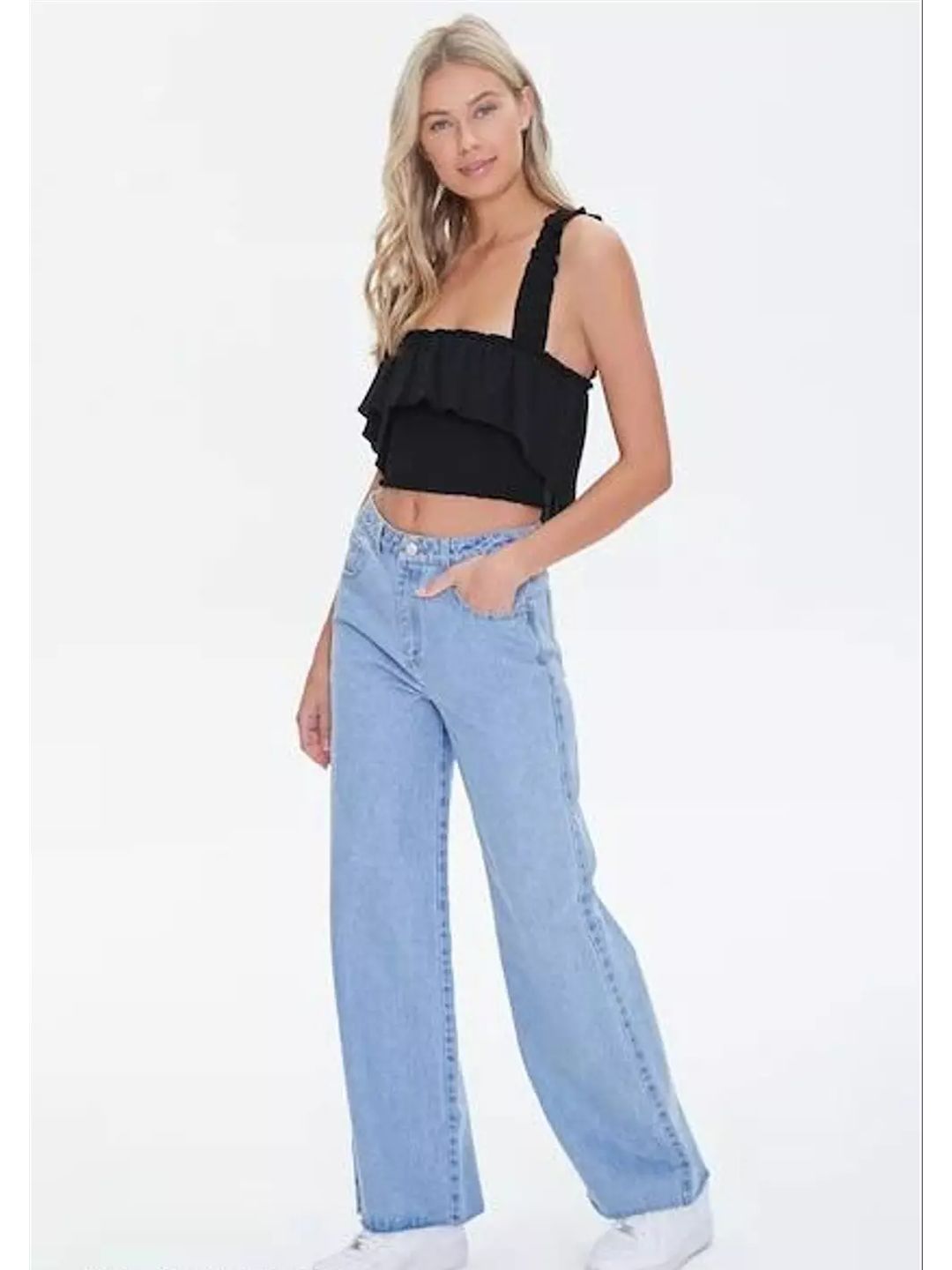 Product Type: Light Blue High Rise Flared Jeans for WomenFabric: DenimColour: Light Blue Sizes: 28 (Waist Size: 28 in, Length Size: 38 in) 30 (Waist Size: 30 in, Length Size: 38 in) 32 (Waist Size: 32 in, Length Size: 38 in) 34 (Waist Size: 34 in, Length Size: 38 in) Country of Origin: India