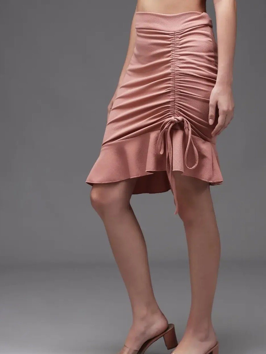 Product Name: Light Pink Ruched Mini Skirt for Women