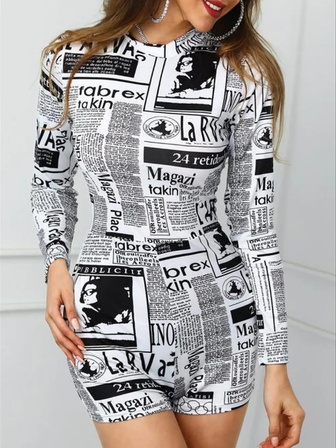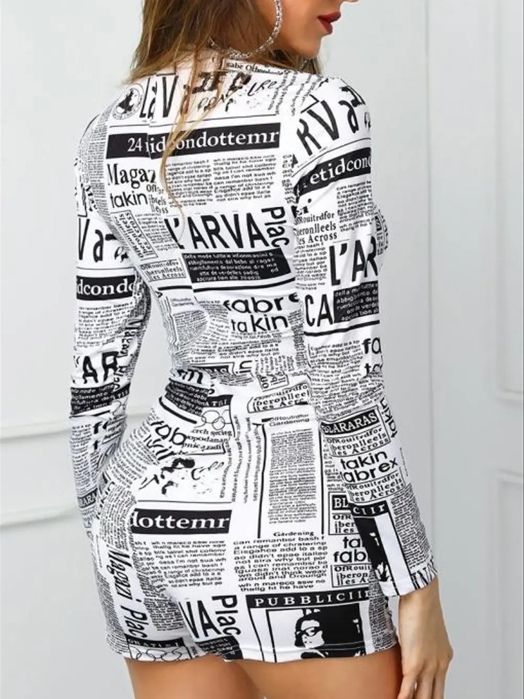 Name: Magazine Printed Mini Bodycon Dress