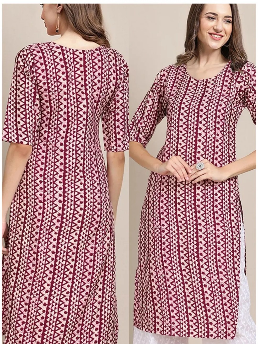 Product Name: Maroon Ethnic Printed Straight Kurta for Women