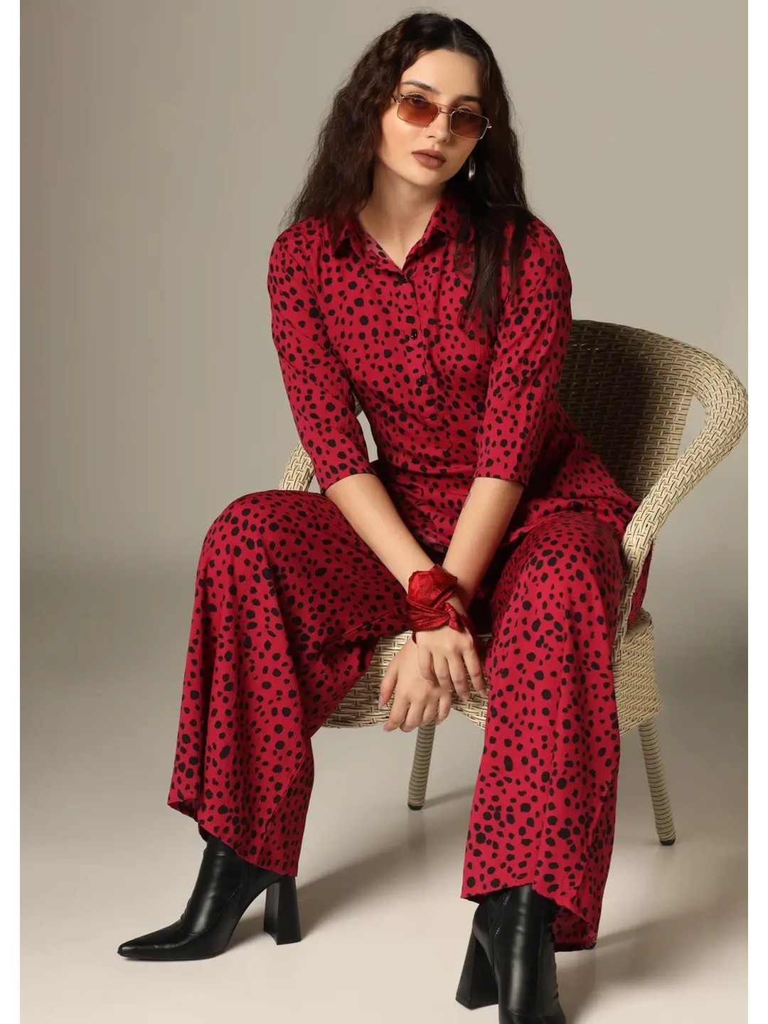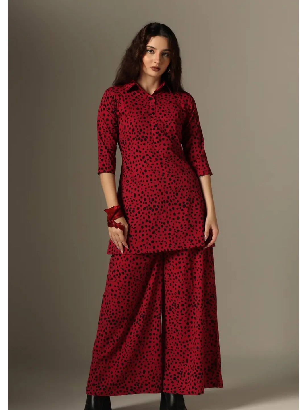 Product Name: Maroon Printed Tunic Kurta and Palazzo Co-ord Set for Women
