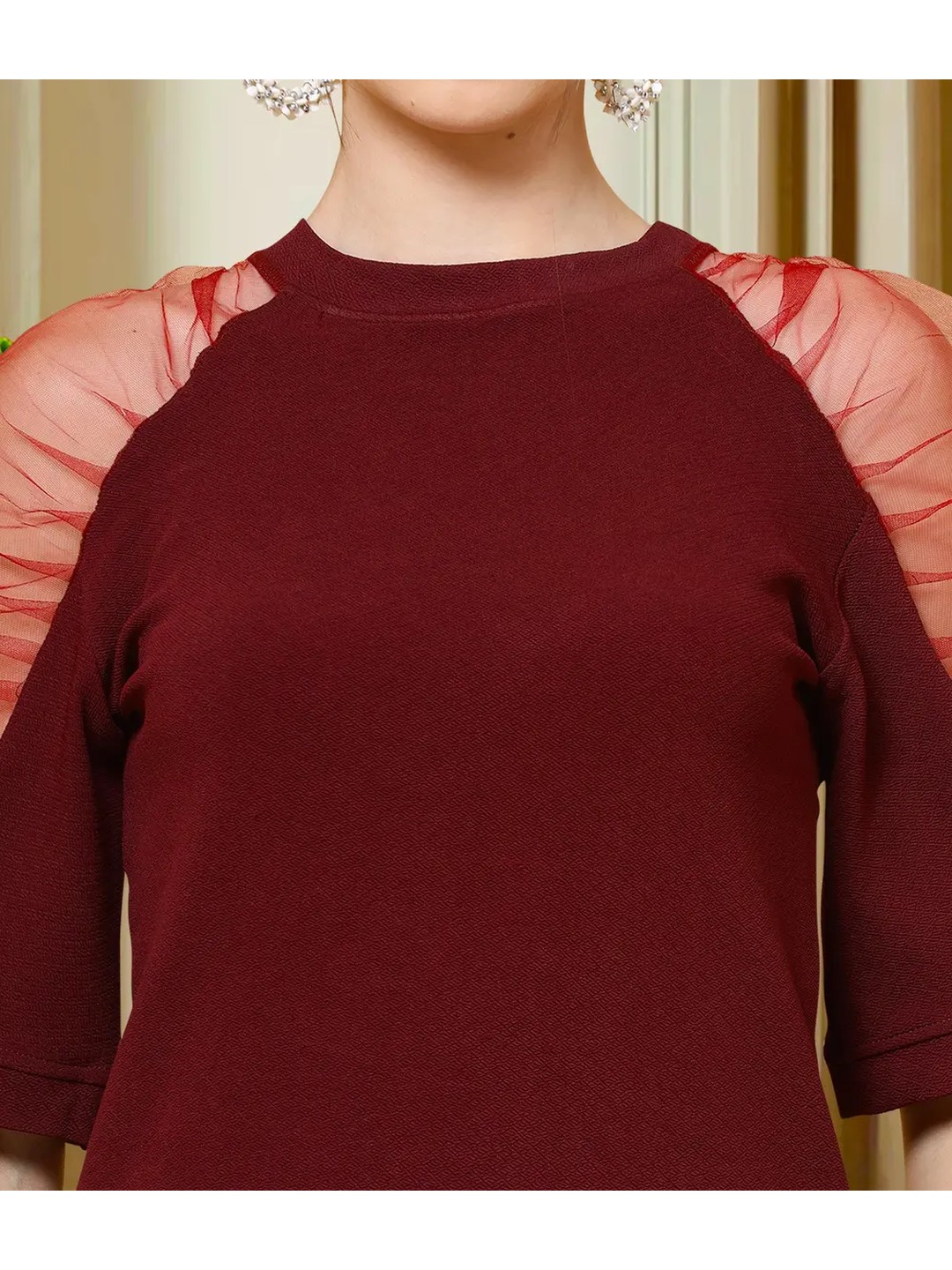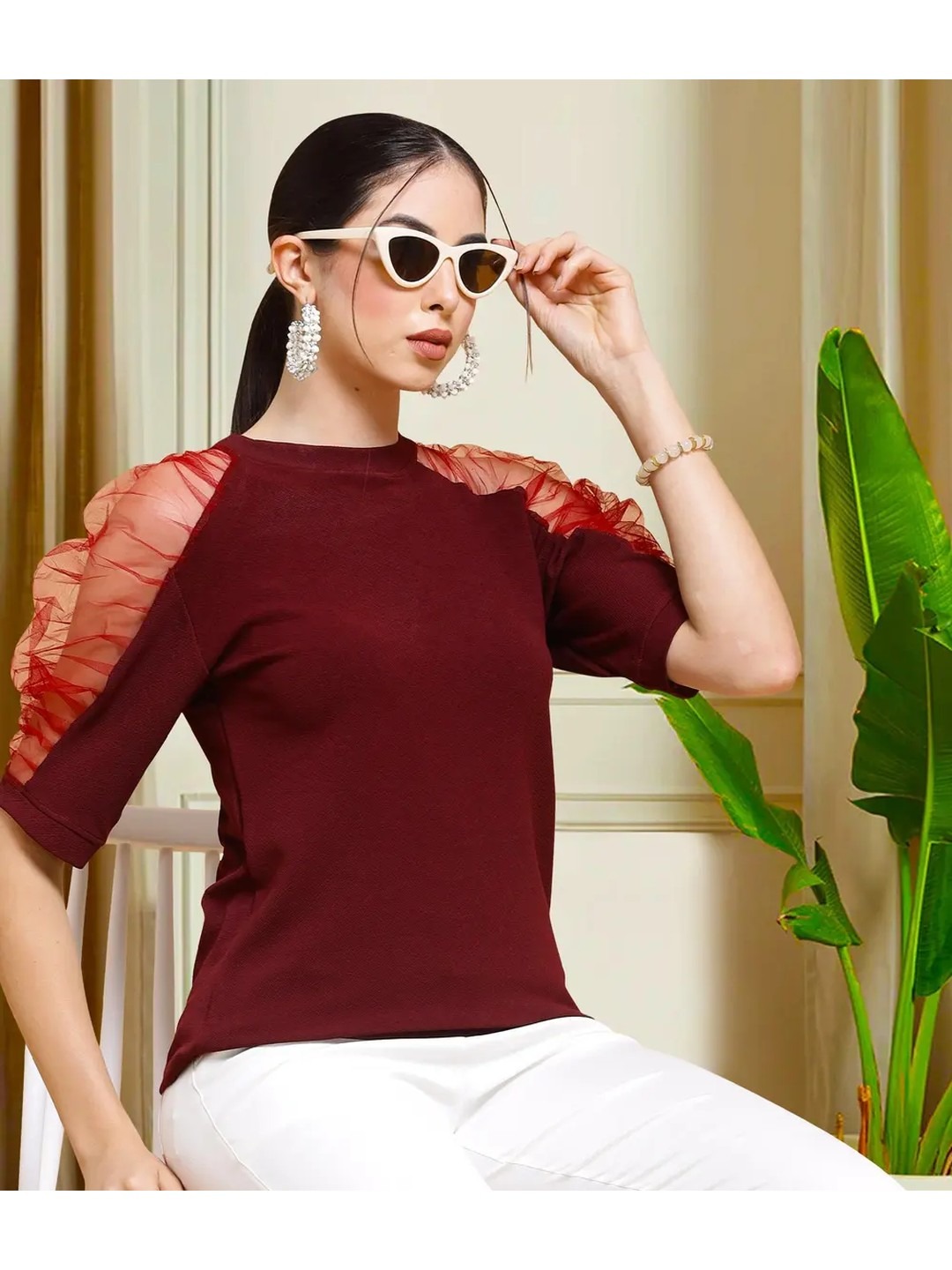 Product Name: Maroon Puff Sleeve Regular Top for Women
