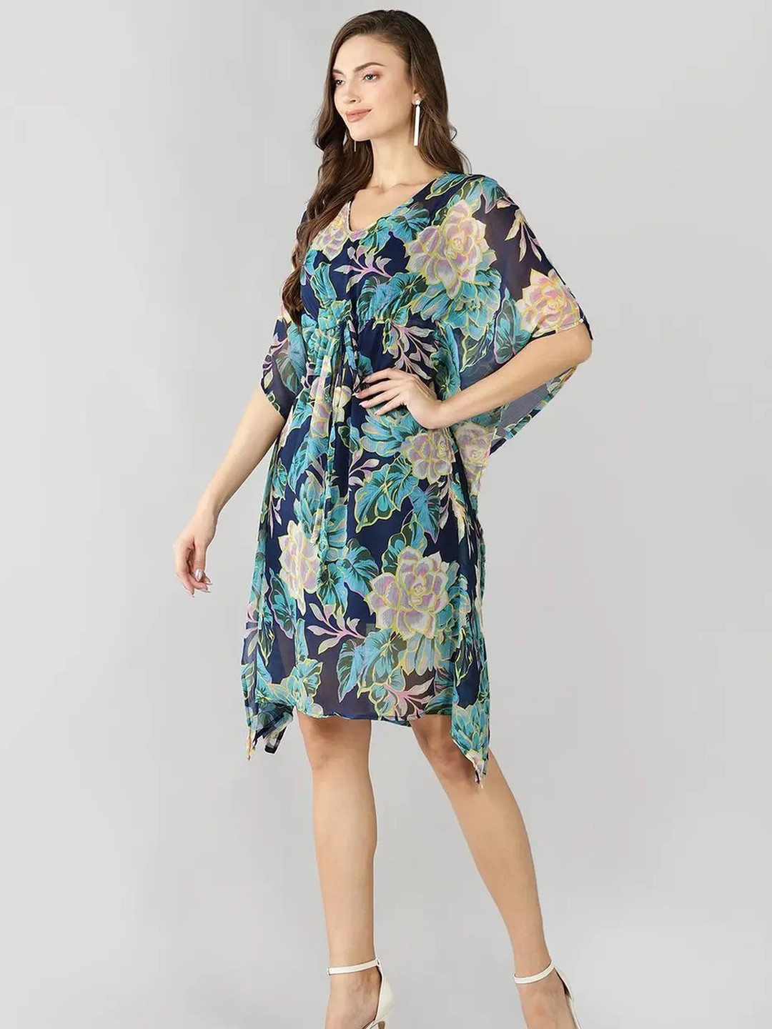 Product Name: Multicolour Floral Kaftan Dress for Women