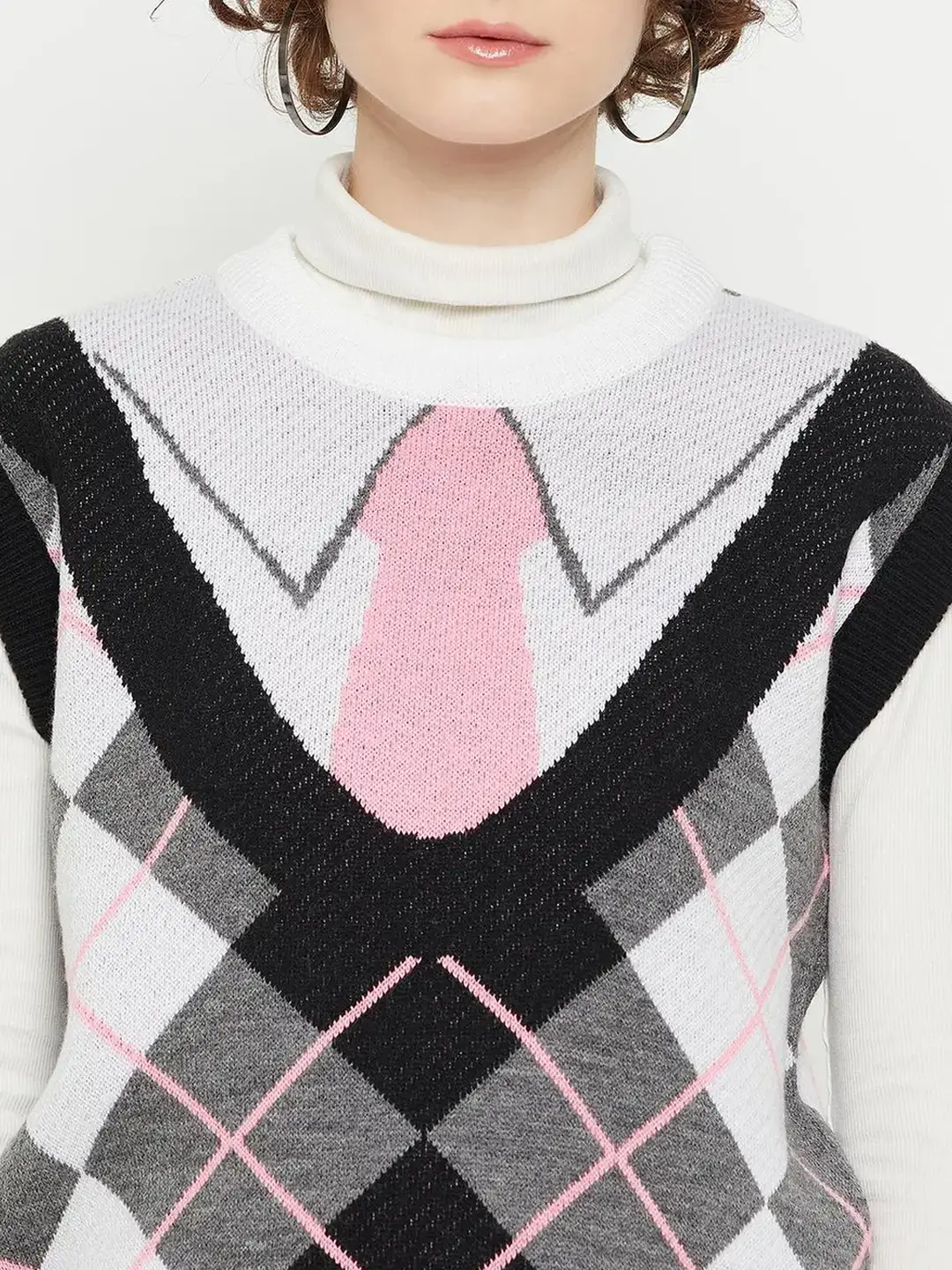 Product Name: Multicolour Printed Wool Sweater Vest for Women