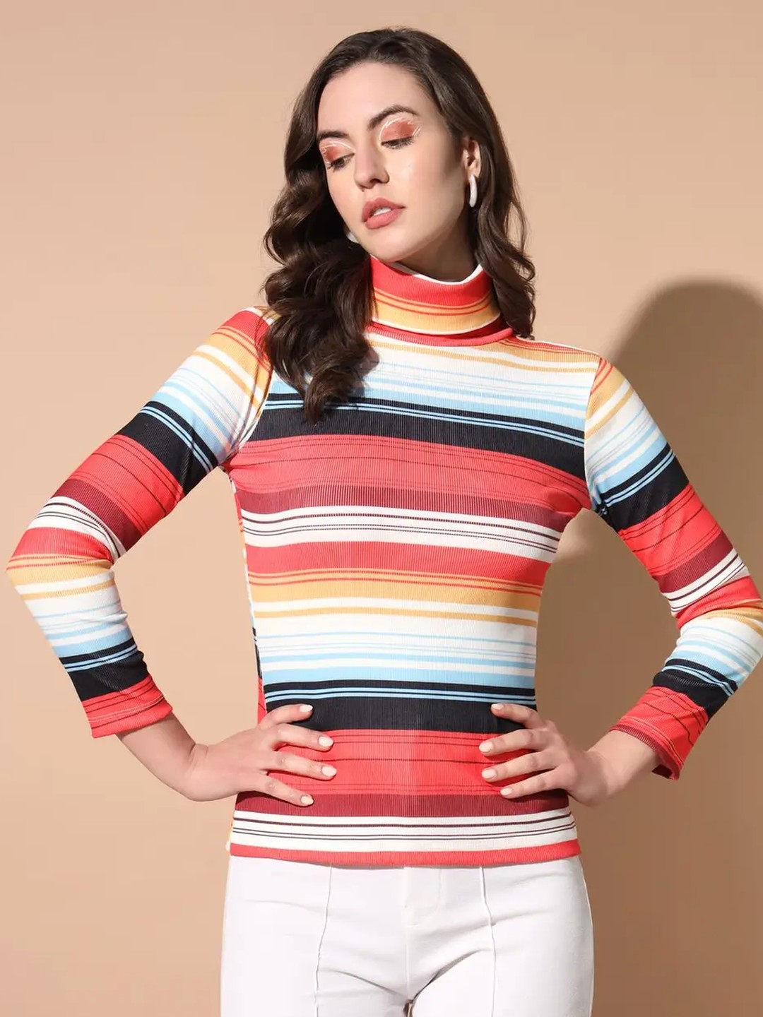 Product Name: Multicolour Striped Turtle Neck Top for Women